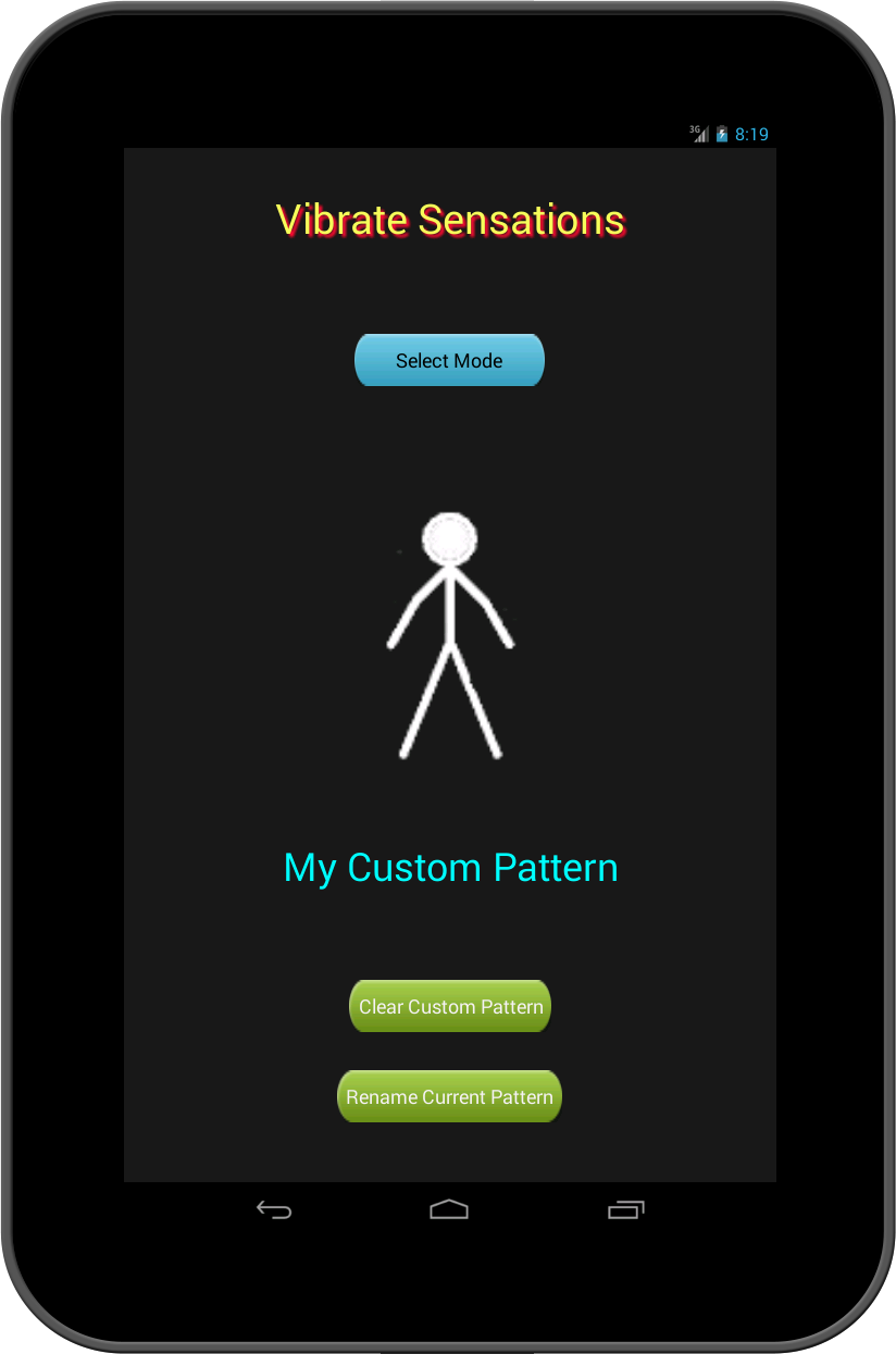 To start and stop the vibration please tap the stick figure in the middle of the screen.