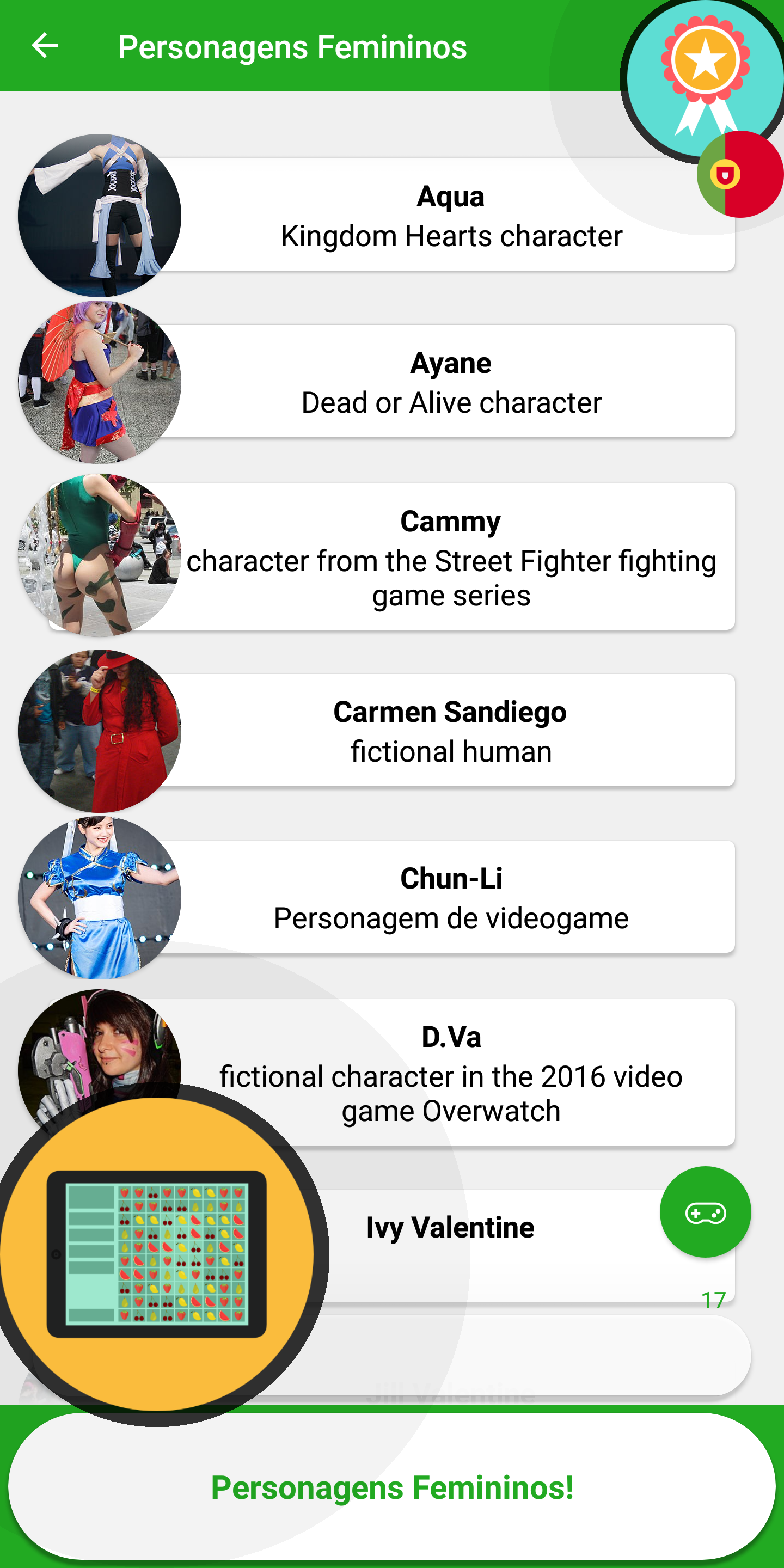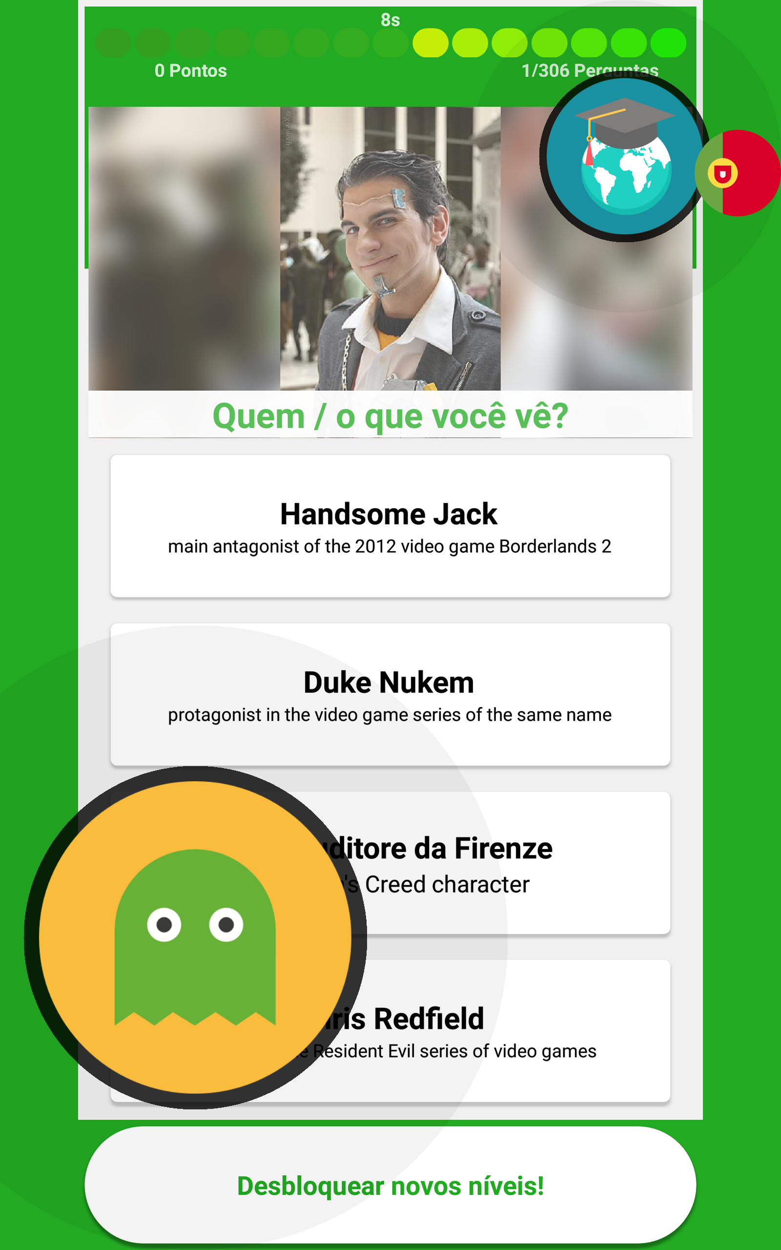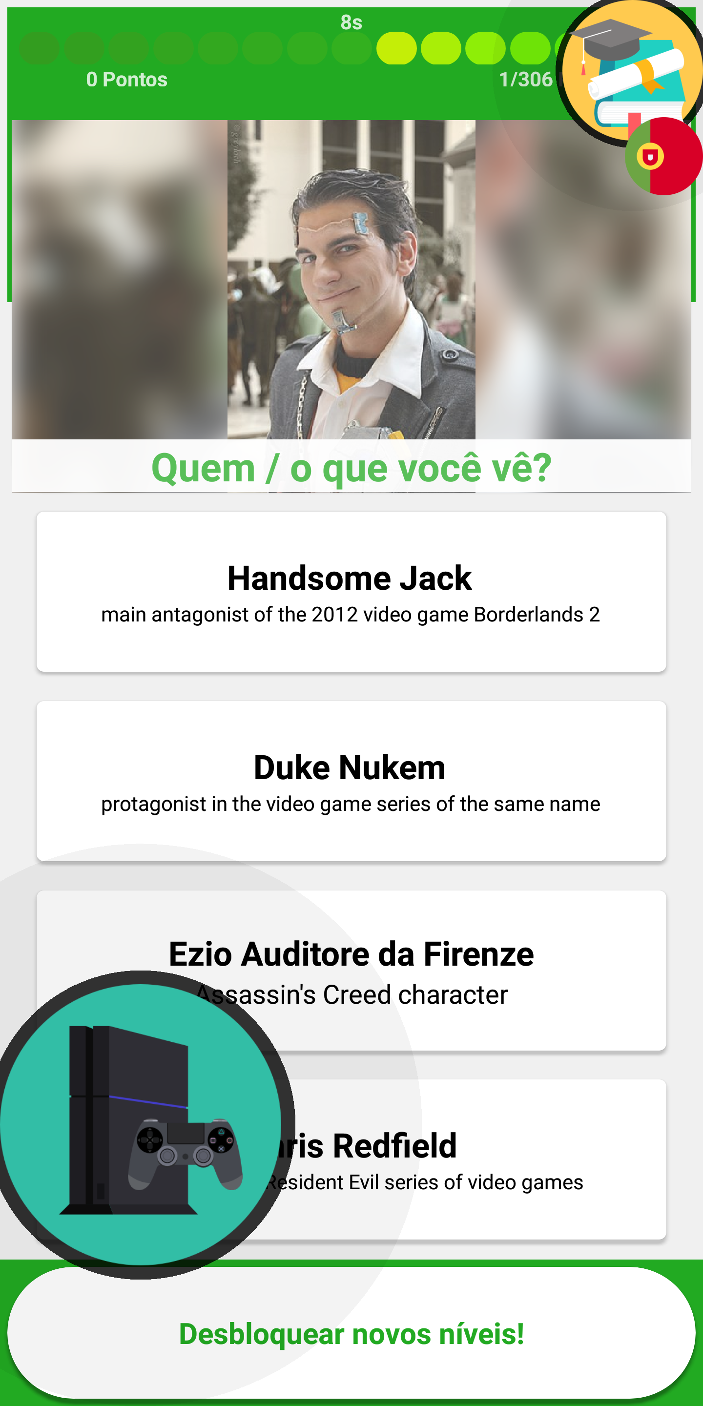 Bem-vindo ao "VideoGame Jogo de teste de 2019", um VideoGame enciclopédia aplicativo para o seu dispositivo Android! Este incrível "VideoGame, Jogo de perguntas 2019" definitivamente vai explodir sua mente, devido à sua maravilhosa gráficos e jogabilidade surpreendente. Um aplicativo com informações detalhadas sobre Videogames em uma maneira fácil. Você vai obter o conhecimento preciso sobre várias categorias como Personagens Femininos, Masculinos Personagens, Personagens Animais, console de jogos e muito mais. "VideoGame, Jogo de perguntas 2019" não é apenas um simples jogo de VideoGame quiz aplicativo, mas também um grande jogo de VideoGame de enciclopédia. Você vai aprender muito sobre jogos de vídeo respondendo a perguntas do quiz! A subida até novos níveis! Por favor, deixe-nos a sua avaliação e revisão para deixar-nos saber a sua opinião sobre este app. Seu feedback é muito importante para nós, para a melhoria.