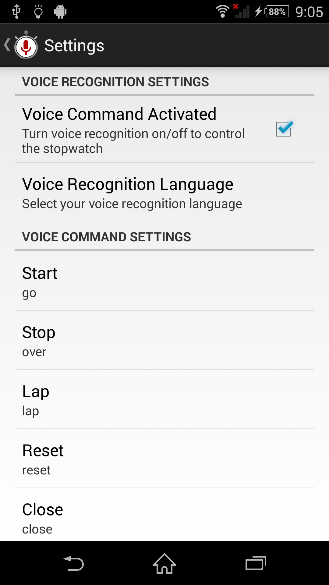 This is the first version of Voice StopWatch and might not working in all Android phones. Please give us your feedback about the app functionality and we would appreciate if you report us the bugs if you encountered any.