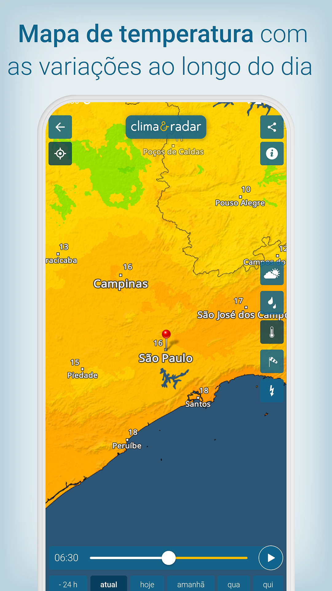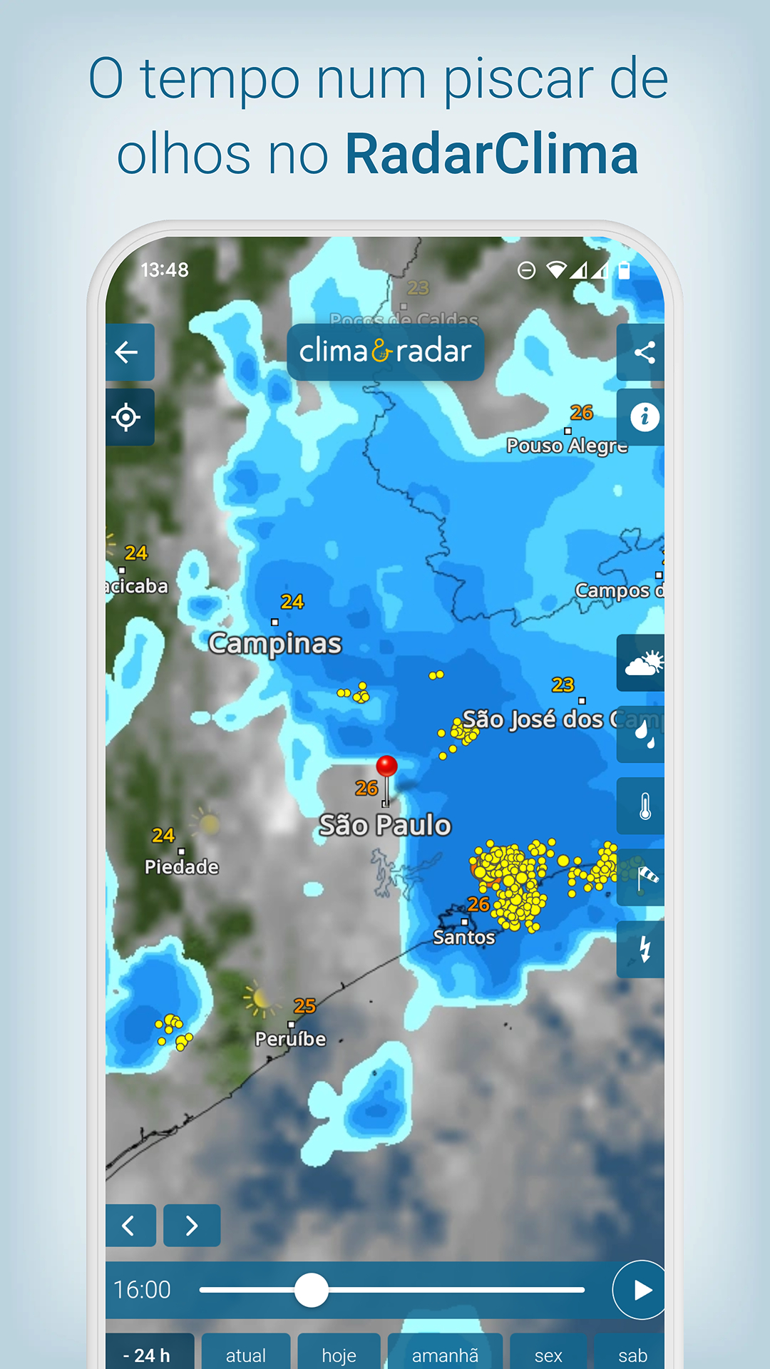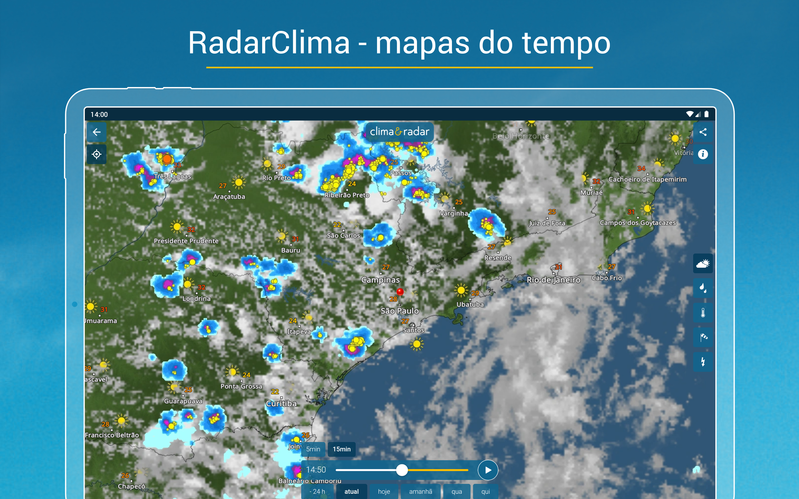 Tudo sobre previsão do tempo e meteorologia você encontra no app grátis Clima & Radar:• RadarClima – Mapas do tempo, radar de chuva, temperatura, vento e raios