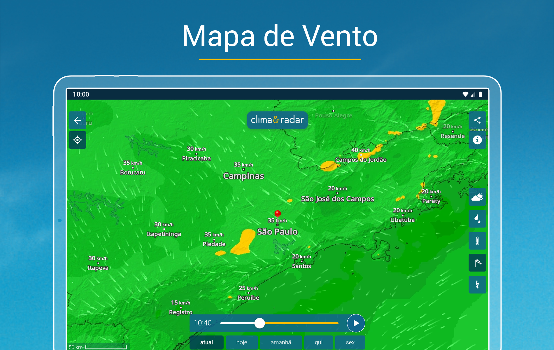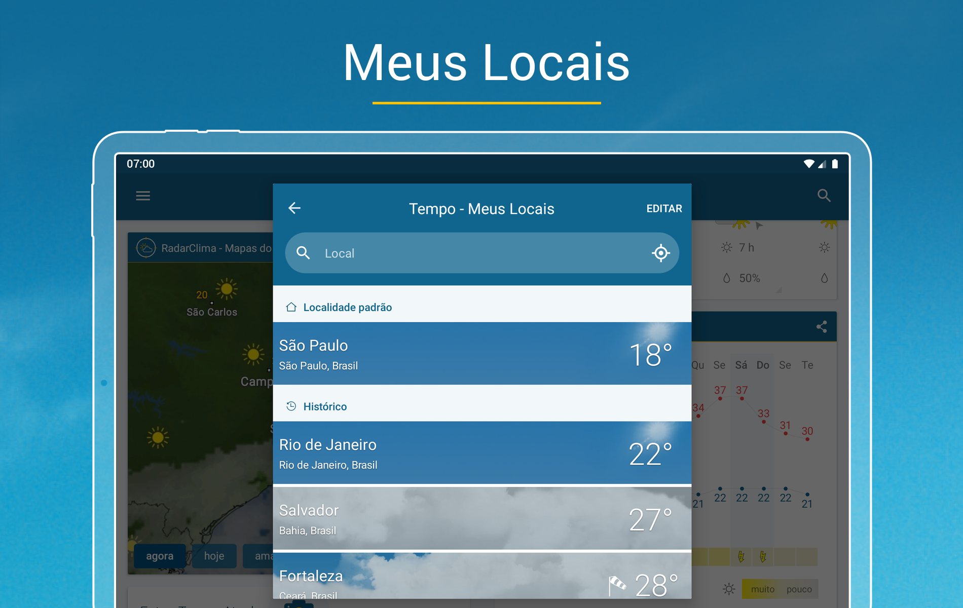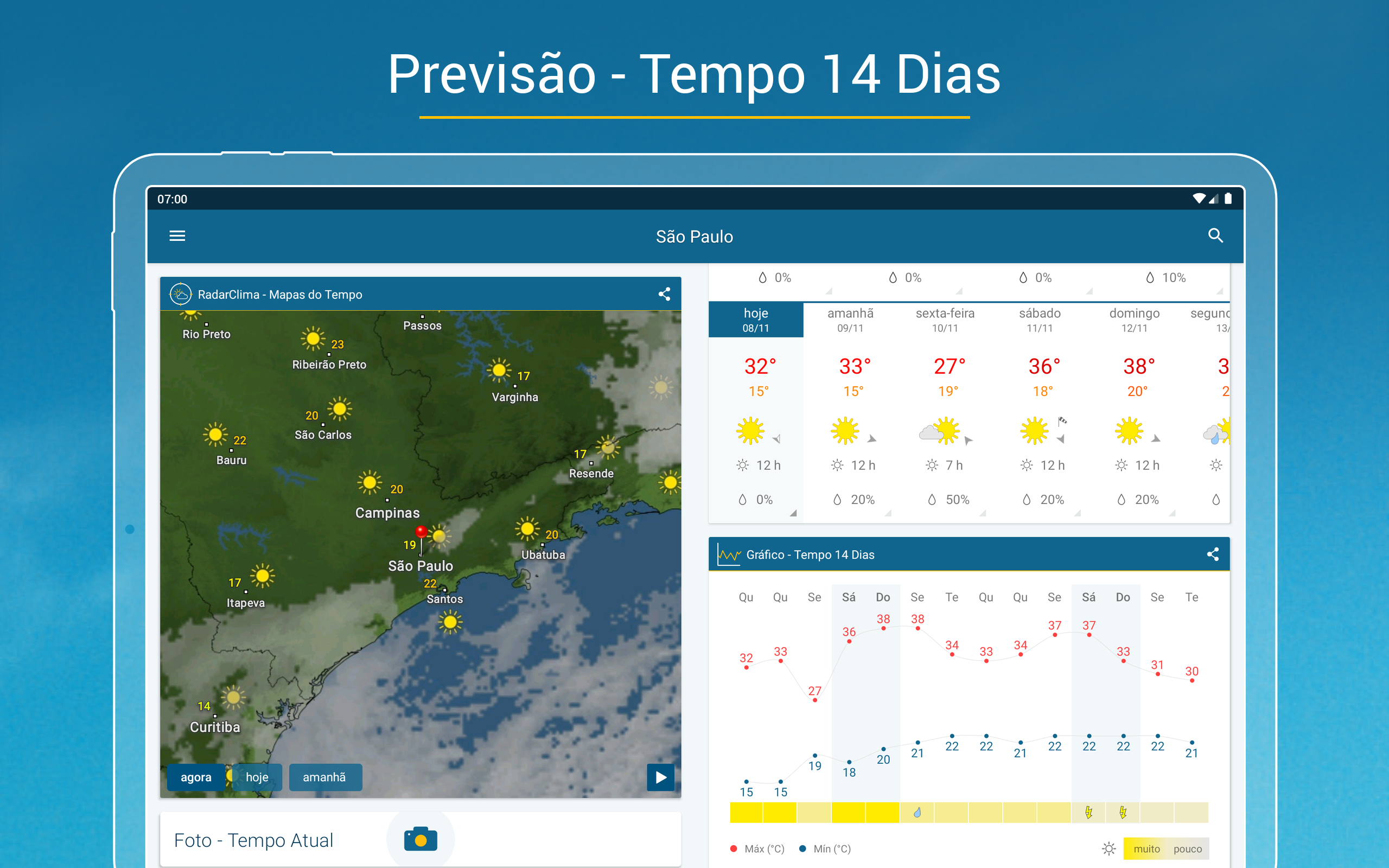 Tudo sobre previsão do tempo e meteorologia você encontra no app grátis Clima & Radar:• RadarClima – Mapas do tempo, radar de chuva, temperatura, vento e raios