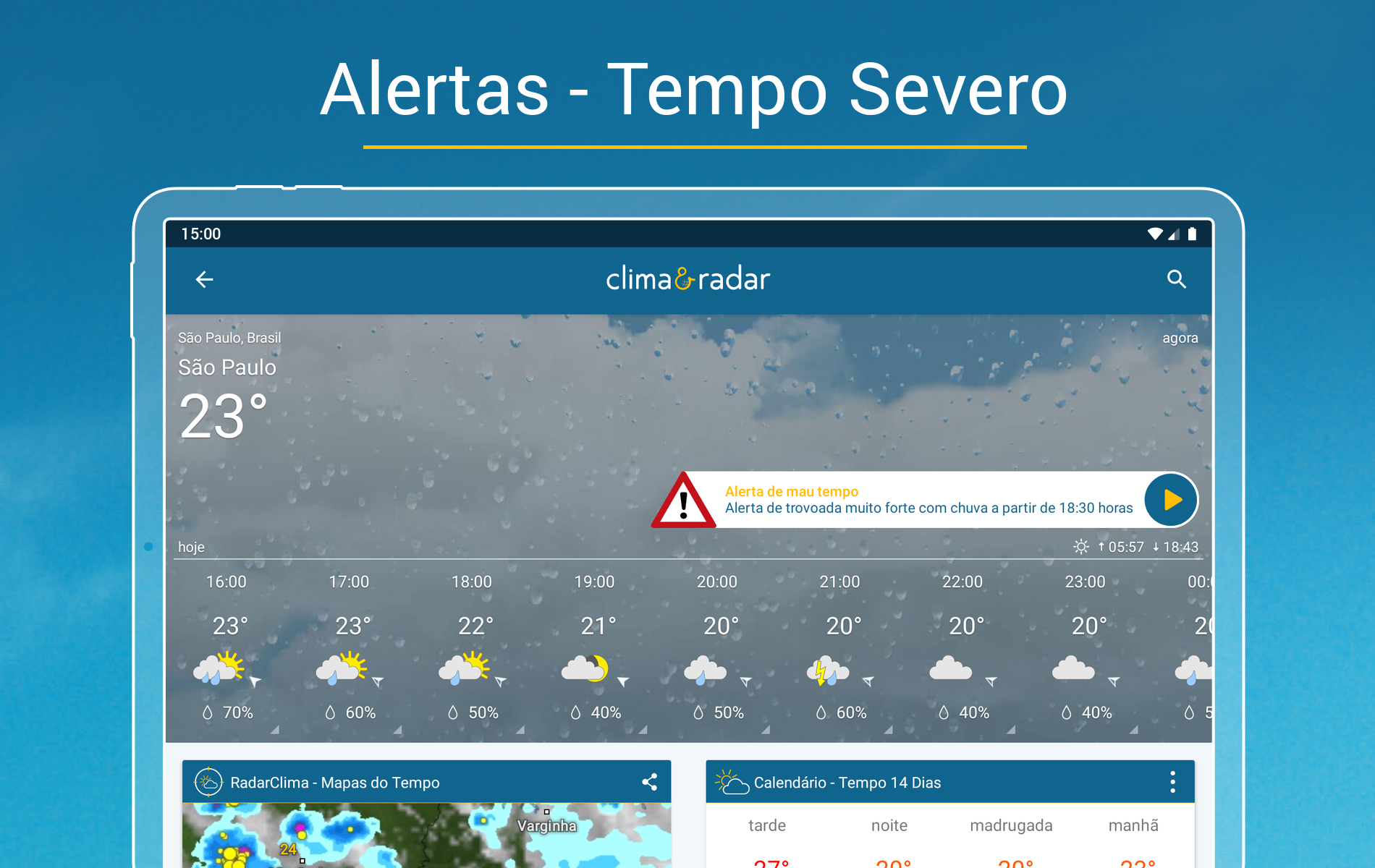 • Avisos meteorológicos - Notificação Push e ao vivo no Tempo agora