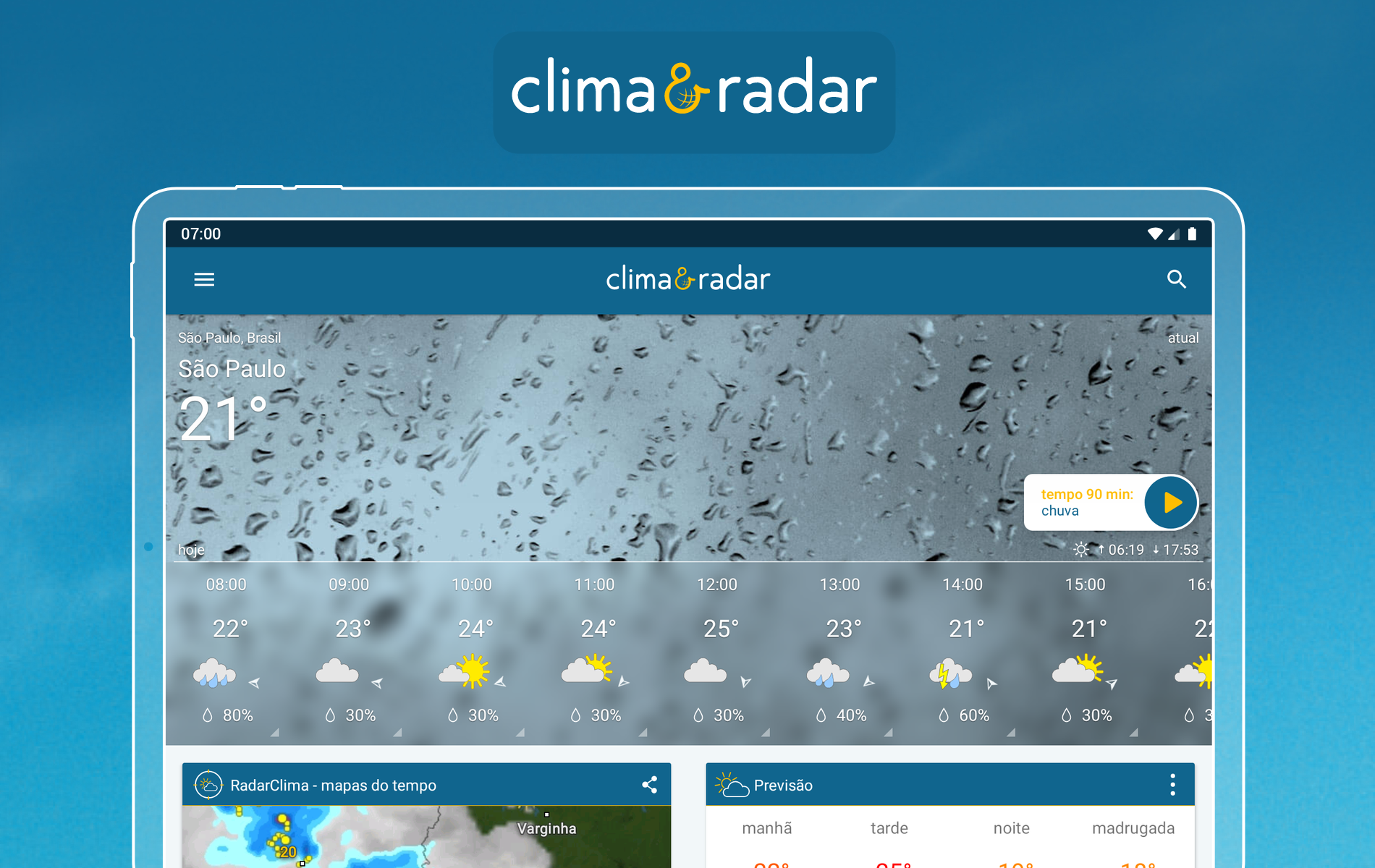 • Previsão do tempo por hora e por períodos do dia