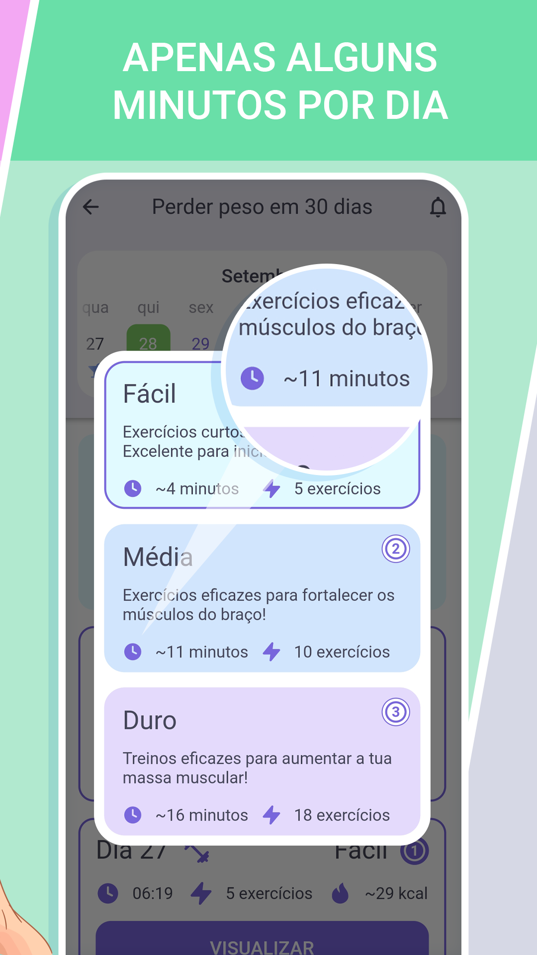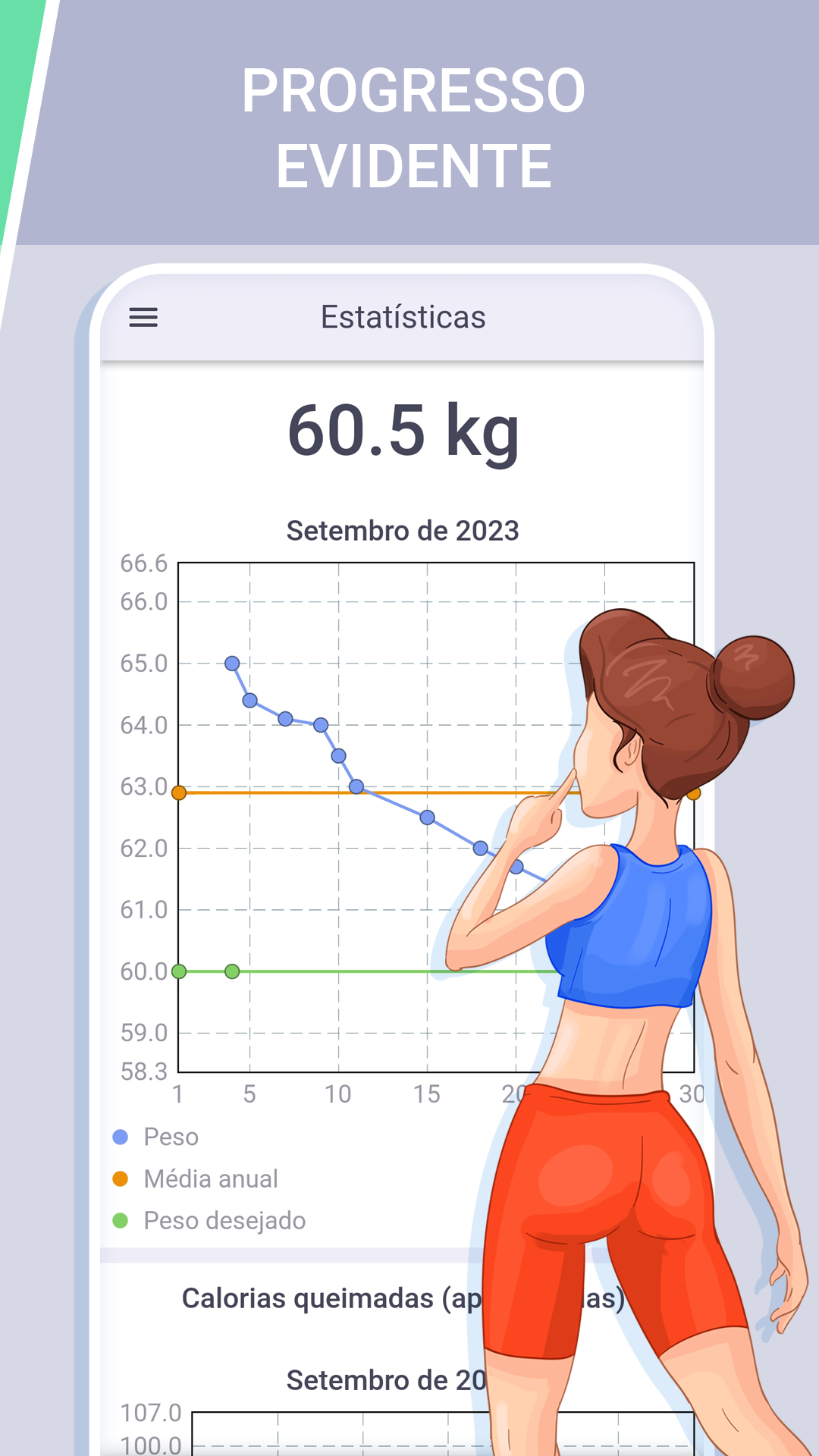 Quer perder peso, queimar gordura, entrar em forma e se tornar a sua melhor versão? Mas não pode dispender de muito tempo, dinheiro e esforço? Com o aplicativo Treino de perda de peso para mulheres, é fácil! Você só preciso do aplicativo e de alguns minutos do seu dia. E depois de 30 dias, você vai adorar os resultados! Incrível, né? O aplicativo Treino de perda de peso para mulheres é... - É como um personal trainer de bolso Uma equipe de treinadores profissionais preparou um programa de treinos curtos para perda de peso projetado para 30 dias. Cada treino é elaborado de modo a equilibrar a carga por todo o corpo e tornar os exercícios de perda de peso para diferentes grupos musculares extremamente eficazes. - É muito rápido Cada treino leva apenas de 5 a 20 minutos. Este período é suficiente para iniciar o processo de queima de gordura e manter os músculos em boa forma. E você não precisa perder tempo indo para a academia. Pratique esportes a qualquer hora, em qualquer lugar: em casa, na praça, no escritório... - É para todo mundo O aplicativo possui 3 níveis de dificuldade, além de um modo "sem pulos". Em todos os níveis e modos, a carga aumenta de forma suave e gradual. Dessa forma, o programa de treino caseiro é adequado para pessoas com qualquer nível de aptidão física: de iniciantes a profissionais. Você vai conseguir! - Você economiza dinheiro Com o nosso aplicativo, você não precisará de nenhum serviço caro de personal trainer, nem pagar a mensalidade de uma academia, nem de equipamentos esportivos. Selecionamos os exercícios mais eficazes, mas ao mesmo tempo mais simples, para perda de peso, que não exigem nenhum tipo de equipamento e vão ajudar a perder peso rápido. - É incrivelmente simples Você não precisa se preocupar em como perder peso, ou em como criar um programa de treinamento eficaz, com que frequência se exercitar e quando descansar para perder gordura abdominal, queimar gordura nas coxas e braços e perder aqueles quilinhos a mais. Já está tudo pronto para você! Basta seguir o cronograma de exercícios no aplicativo! - É autocuidado Tanto o resultado quanto o prazer do processo são igualmente importantes para nós. Nossa tarefa é garantir que, no final do treino, você sinta uma onda de energia, e não falta de ar. Curta as endorfinas produzidas durante o treino, fique mais magra, forte, em forma e admire-se! - Os resultados são evidentes Você poderá acompanhar o seu progresso em gráficos convenientes e no calendário: seu peso desejado e real, quilos perdidos, tempo gasto em exercícios e a quantidade de calorias queimadas são todos claramente exibidos. E o reflexo no espelho e as recompensas pelas conquistas tornarão a trajetória até o seu objetivo ainda mais agradável! - É a oportunidade de fazer as coisas do seu jeito Treinos caseiros para perda de peso para mulheres incluem exercícios para todos os principais grupos musculares: abdome, coxas, pernas, glúteos, braços, etc. Mas você se concentrar nas áreas mais problemáticas criando seus próprios treinos. É hora de passar da palavra à ação! Instale o aplicativo Treino de perda de peso para mulheres e perca peso de modo fácil e rápido!