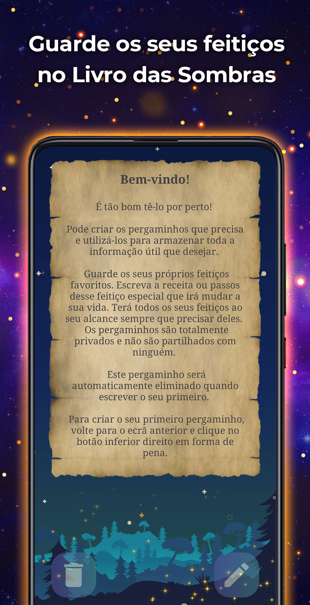 ⛤ Livro das Sombras: O Livro das Sombras permite-lhe guardar notas pessoais de todos os tipos e aceder facilmente a elas. Armazena feitiços, encantamentos, rituais, lembretes, etc.