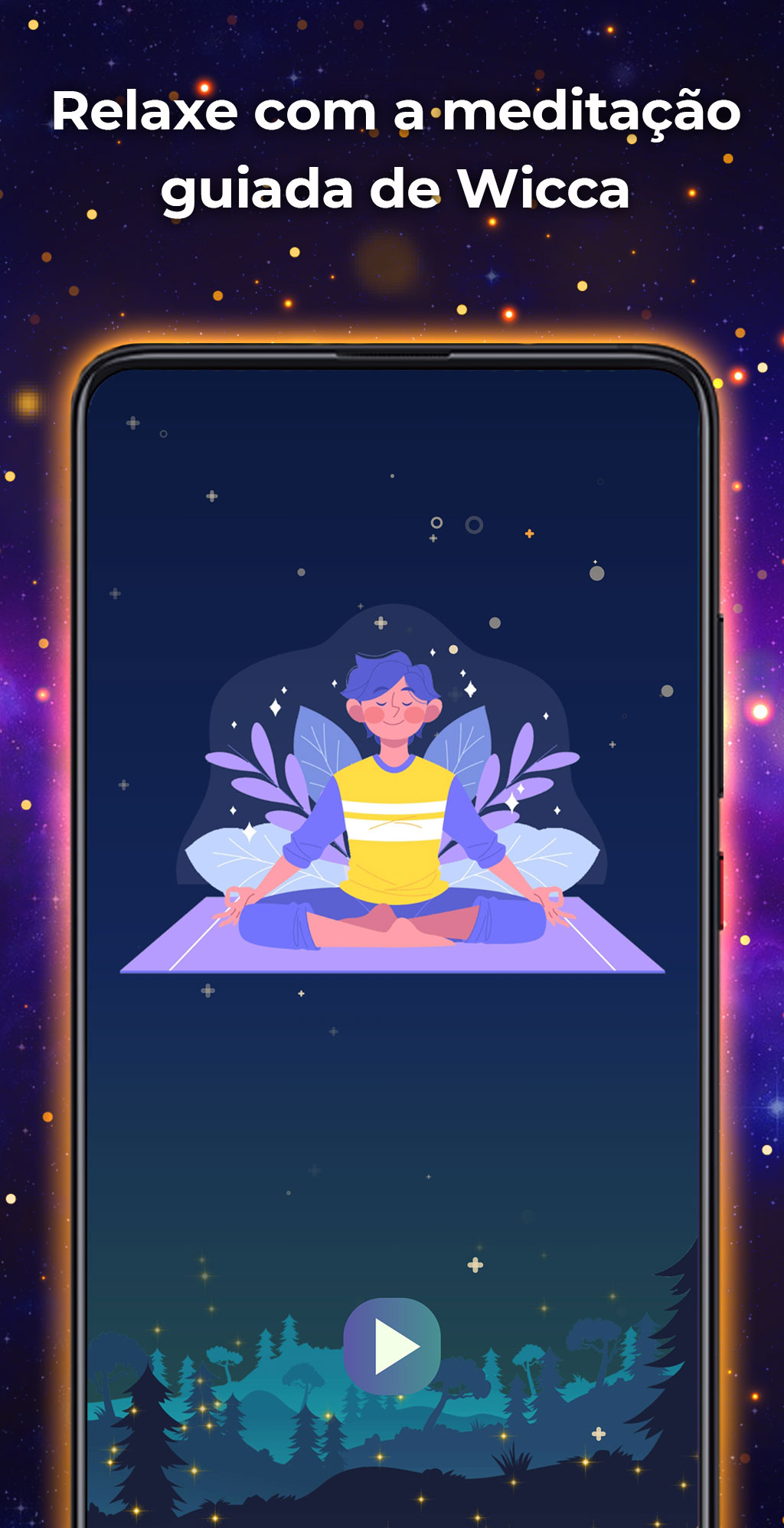 ⛤ Meditação Wiccan: Encontre um lugar tranquilo e relaxe com a meditação Wiccan. Esta funcionalidade toca música relaxante e oferece-lhe mensagens positivas para o ajudar a conectar-se com o universo.