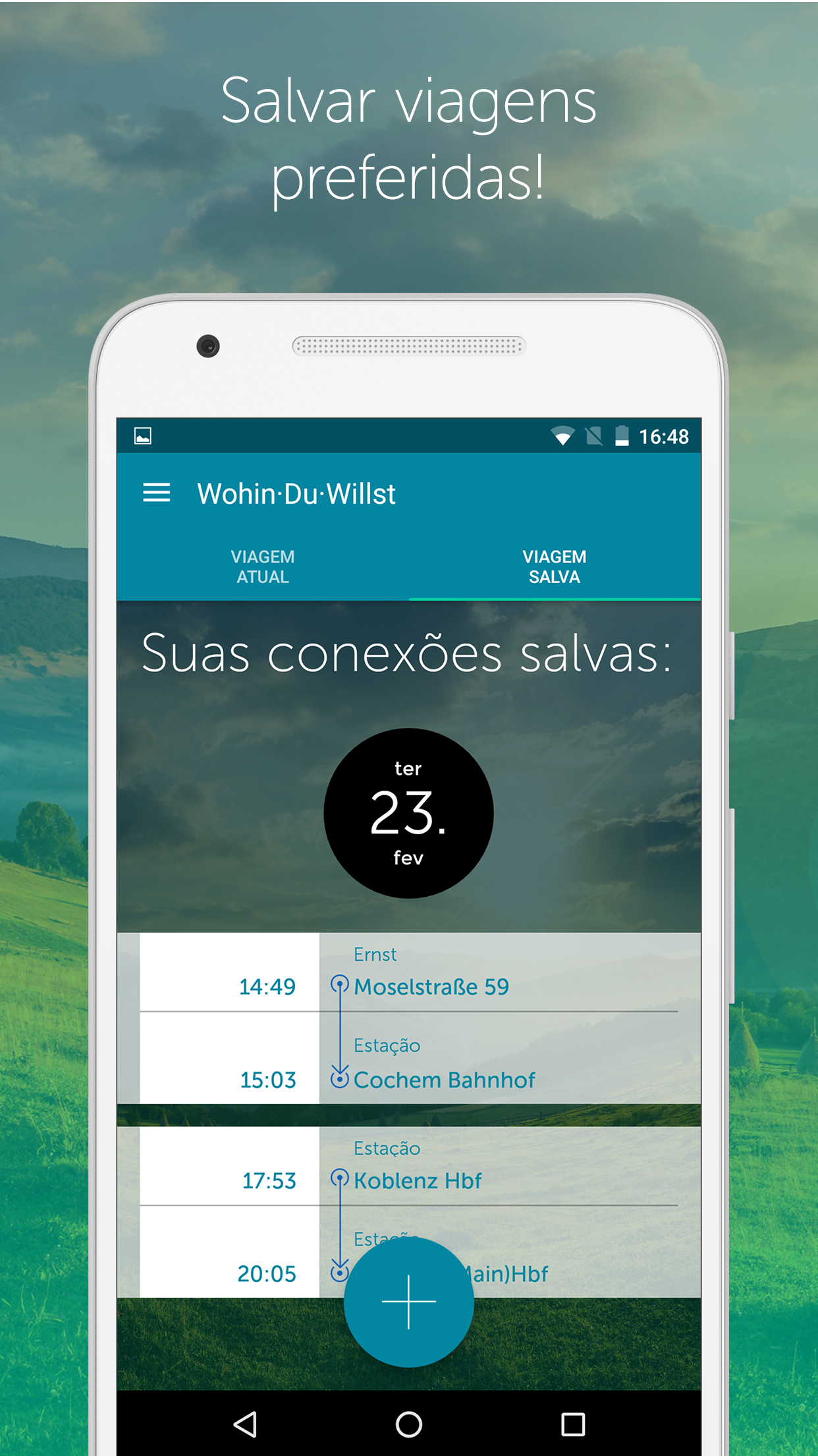 SEU CONSULTOR PARTICULAR DE VIAGENS: ------------- Wohin·Du·Willst facilita sua mobilidade nas regiões da Alemanha como nenhum outro aplicativo. Além de gratuito, o aplicativo reune todas informações de transporte num só lugar: ônibus, linha de longa distância e caronas. COM O WOHIN·DU·WILLST... ------------- … você usa o transporte público de forma tranquilal … você planeja seu caminho de forma confortável! … você ao seu destino de forma fácil! FUNÇÕES ESPECIAIS: ------------- • Ache o caminho mais fácil para o seu destino • Reserve caronas • Prepare seu calendário pessoal de viagens • Lembre se todas as viagens planejadas • Leia notícias do seu país durante o caminho CONFIGURAÇÕES DO APP: ------------- • Utilizável em toda alemanha • O aplicativo se baseia de acordo com a sua região na Alemanha. FUNÇÕES FUTURAS: ------------- • Fusão do seu calendário pessoal com o calendário das suas viagens • Lembrete automático das suas viagens • Visualizar os ônibus do local em tempo real • Requisito de necessidades individuais no transporte • Transporte antigravitacional (tabom vai, isso vai demorar um pouco...)
