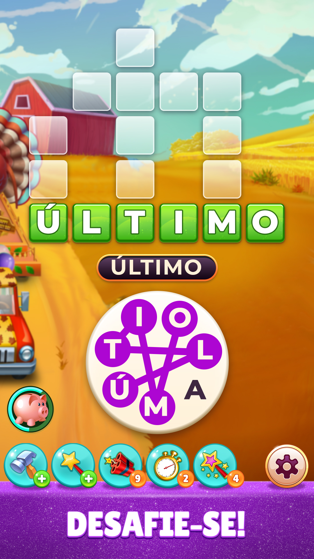 Recompensas - Depois de resolver cada quebra-cabeça de palavras, você será recompensado com moedas e estrelas para ajudá-lo a completar missões e restaurar a fazenda.