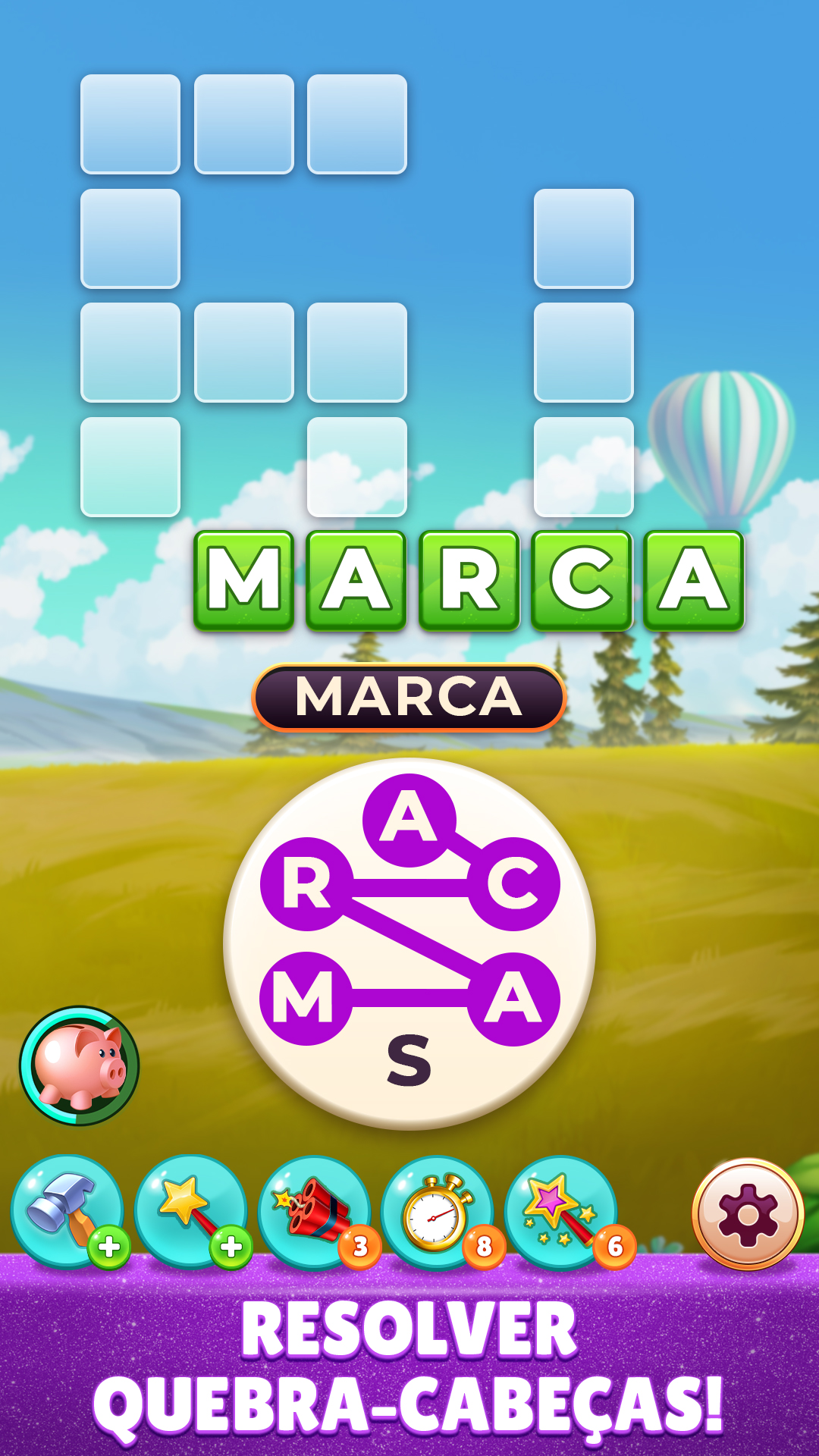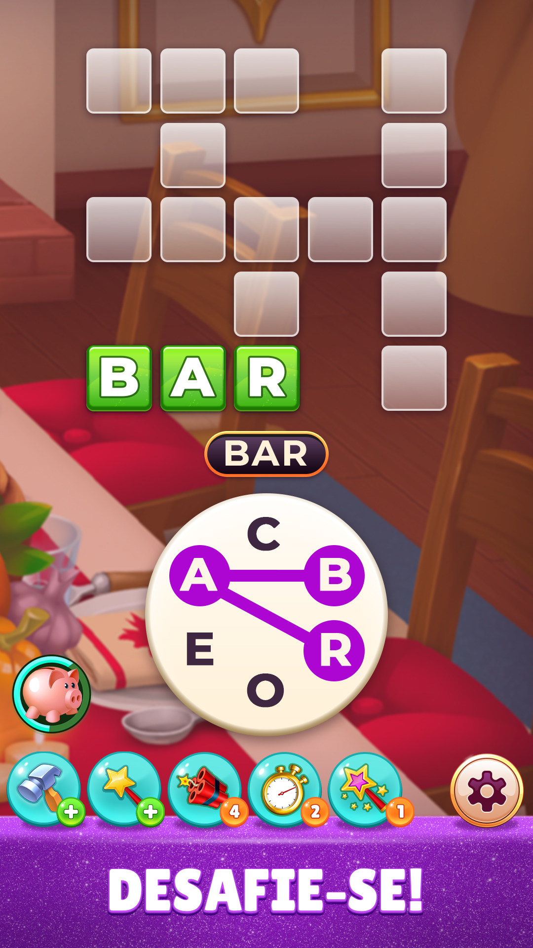 Boosters - Se você estiver tendo problemas para resolver um quebra-cabeça de palavras, toque nos fogos de artifício ou no martelo para revelar as letras do quebra-cabeça ou destrua uma palavra inteira com dinamite. Não se esqueça que a varinha mágica também está a apenas um toque de distância.