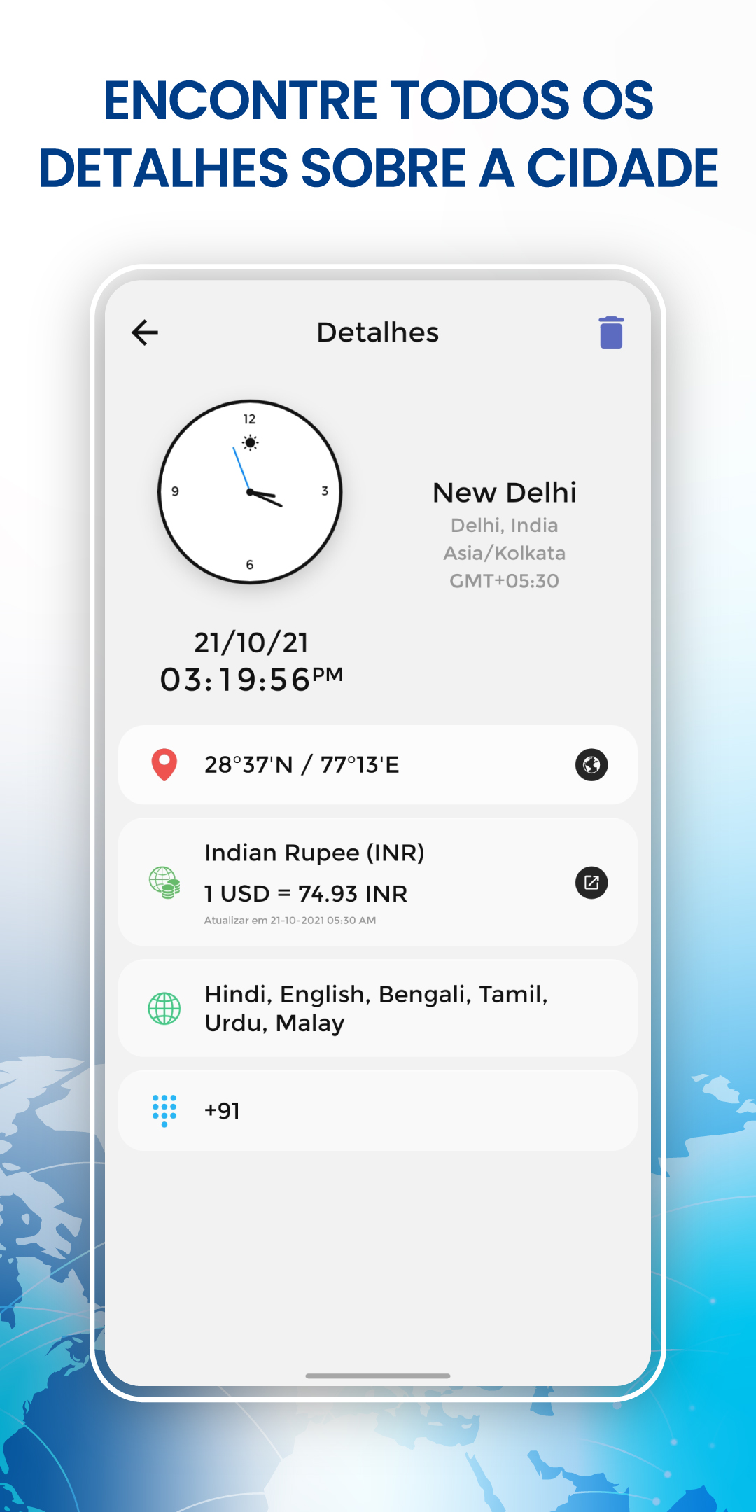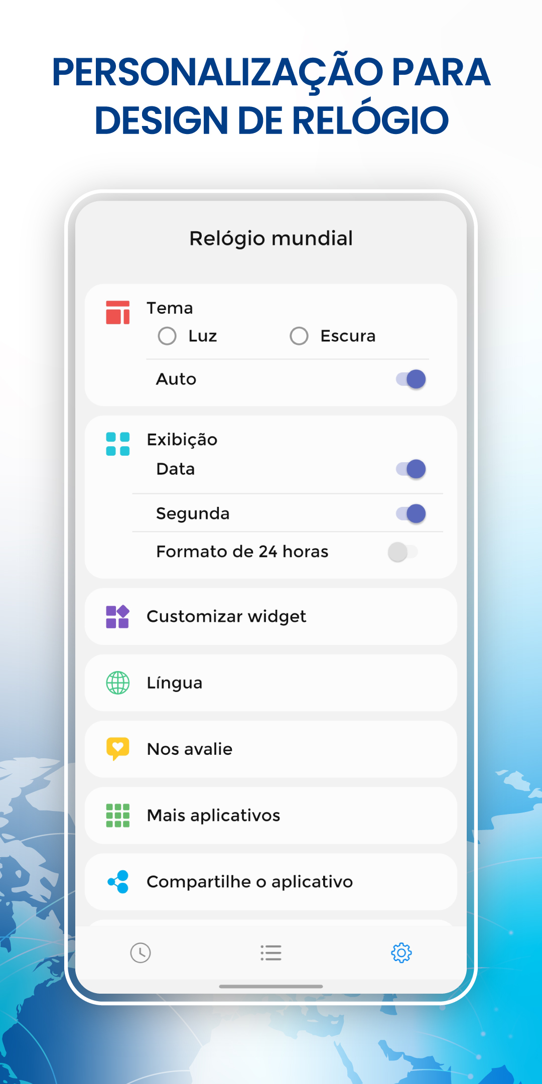 Widget de relógio mundial