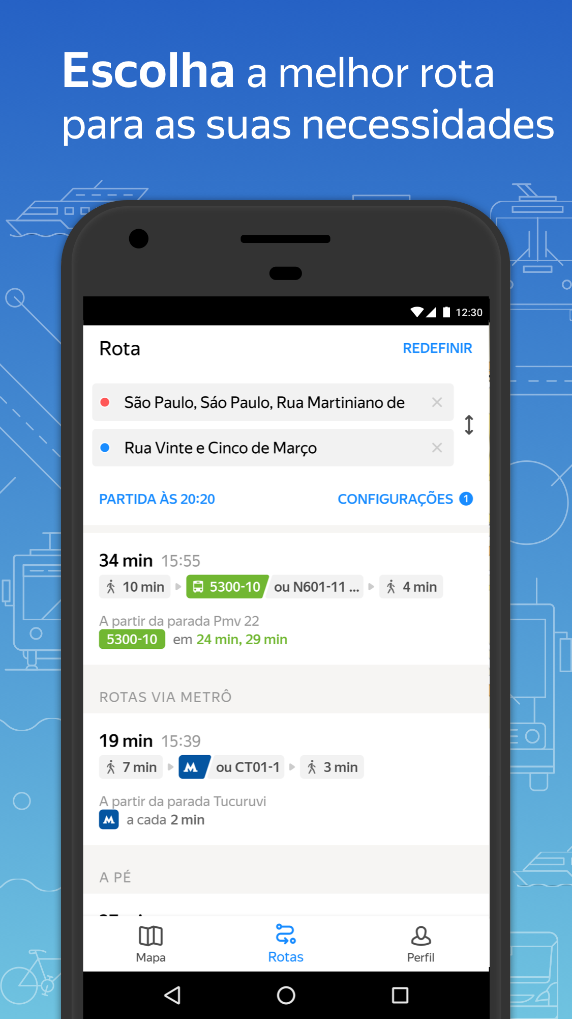 Planeje seus deslocamentos em tempo real com um rastreador de transporte público e planejador de rotas.