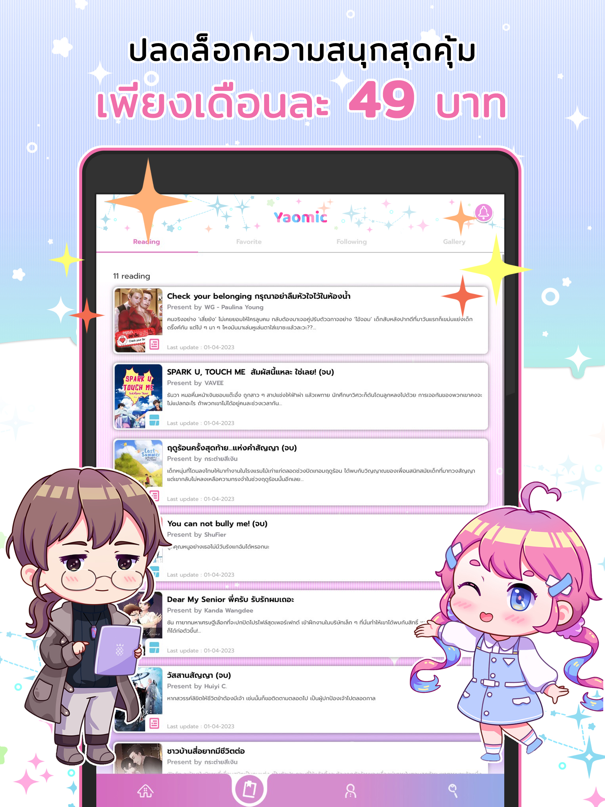 - Leitura de ingressos adquiridos uma única vez Para desbloquear todo o conteúdo de cada história, cada episódio, tanto desenhos animados quanto romances. Pode ler todos os três meses
