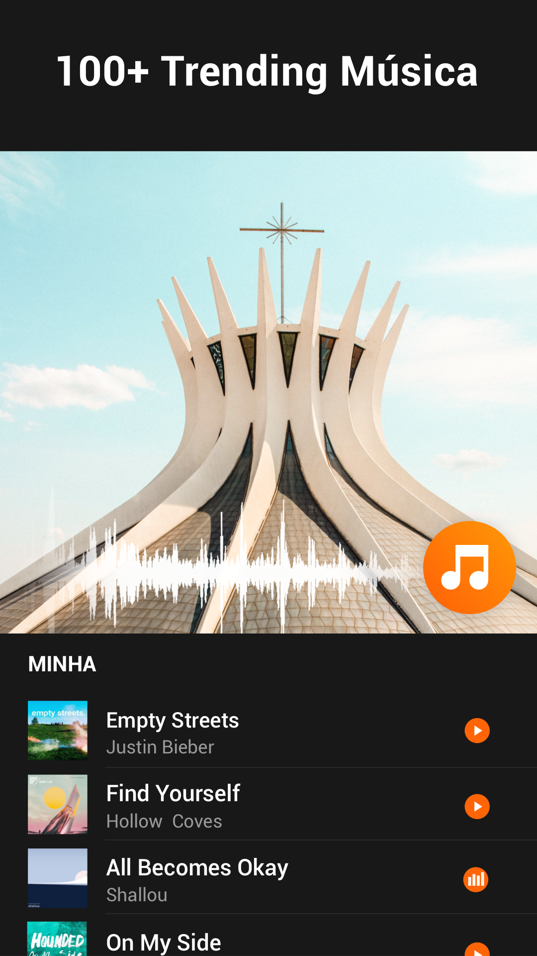 - 100+ músicas com direitos autorais e efeitos, escolha a música que combina com suas vibrações.