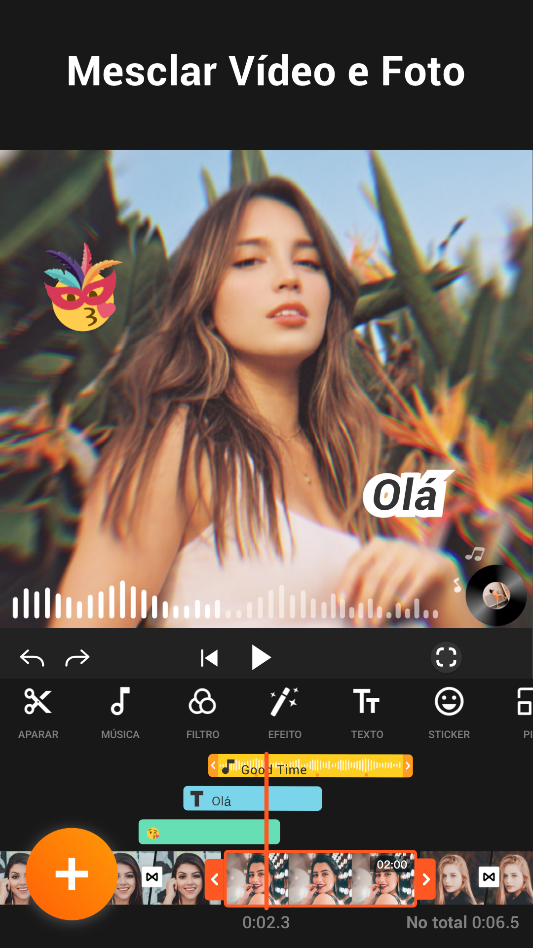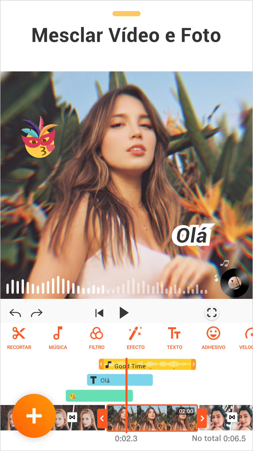 - Combine fotos e vídeos em um único clipe com efeitos, filtros e música.