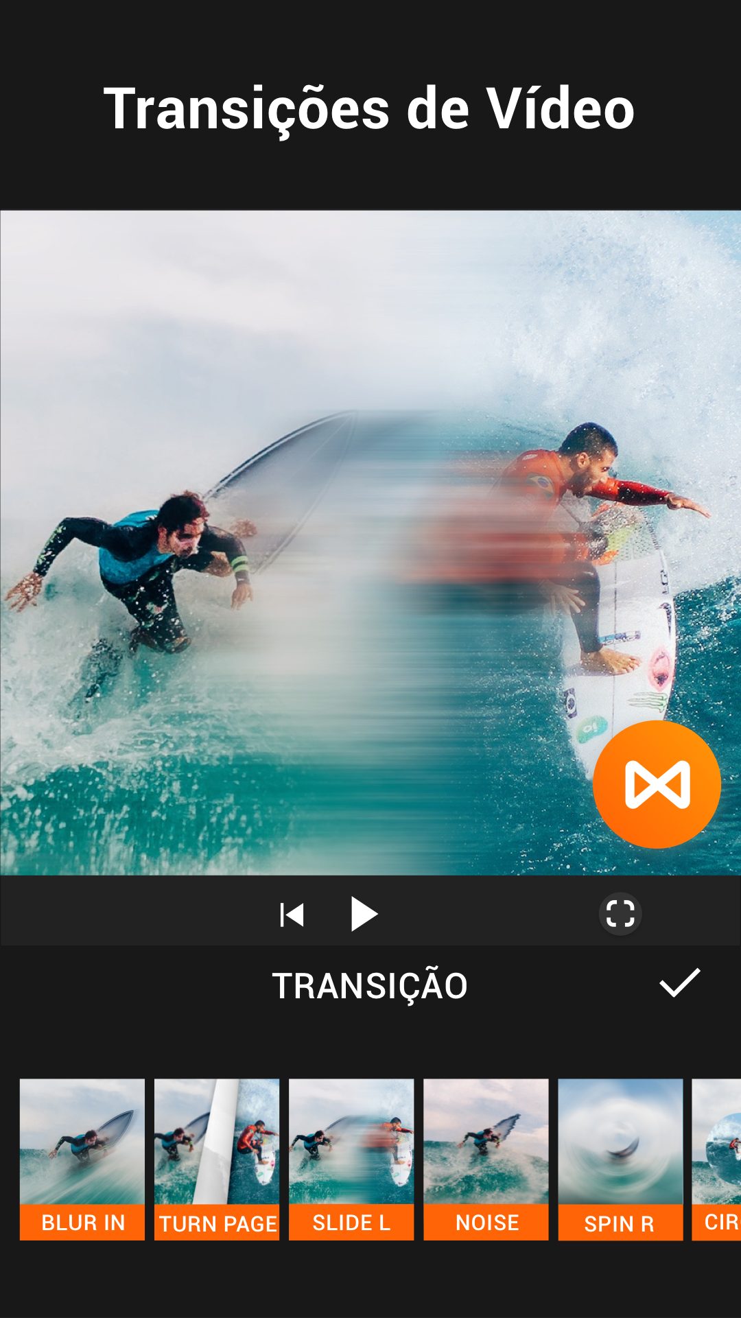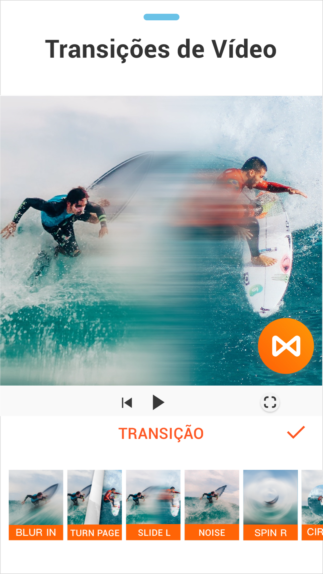 - Variedade de efeitos de transição para você escolher de acordo com suas fotos ou vídeos.
