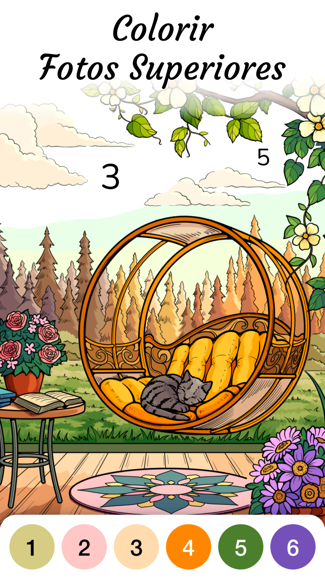 - Explore temas do desenho de pintar: paisagens, animais, cenas aconchegantes e pets