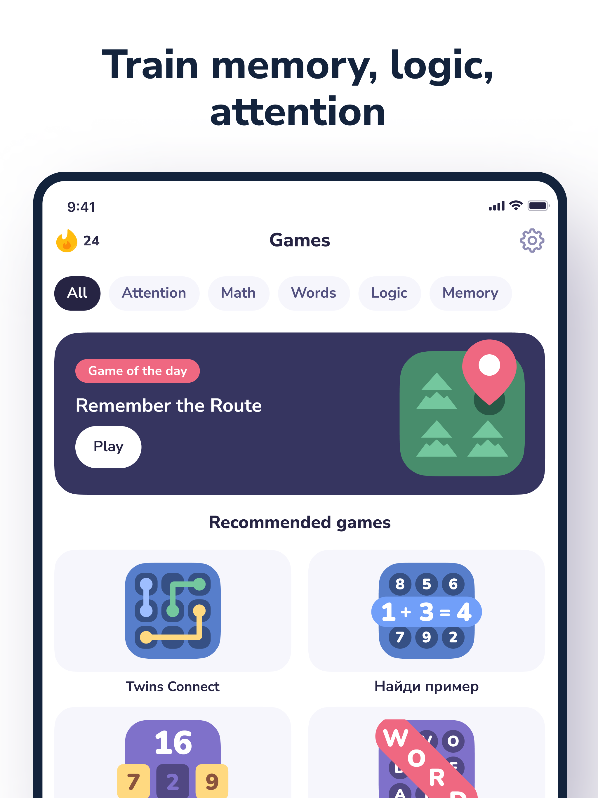 Are you a fan of solving logic puzzles and playing entertaining brain training games, fun thinking games, mind trick games and fun logic games to boost your cognitive skills? Do you find yourself drawn to thought-provoking challenges, intriguing math problems, brain teasers and logical thinking games? Are you ready to put your intellect to the test with a variety of mind-bending memory games for adults and logic puzzles for adults? Dive into our brain training course, now conveniently available on our mobile app! BrainSpot is a popular puzzle game designed to help you sharpen your logical thinking and mental agility. We take a unique approach in our engaging brain teasers and logical thinking games, aimed at improving memory and focus. Spending just 15-20 minutes a day on cognitive exercises and puzzles can significantly enhance your brain training journey. With over 2,500 entertaining memory games for adults, quirky riddles, logic puzzles for adults, brain teasers and logical thinking games to choose from, you can boost your logic skills and challenge your intellect with our app! EXPLORE ALL PUZZLE CATEGORIES! - Logic: Spot the odd one out in pictures or words, and solve sets and sequences. - 3D Thinking: Enhance your spatial thinking with puzzles. - True or False - Math Problems and Magic Squares - Pattern Recognition and Prediction - Weighing and Transfers - Chess Problems - Grid Puzzles: Cells, Sudoku, Kakuro - Quizzes THREE LEVELS OF DIFFICULTY: - Basic - Advanced - Expert ARE YOU UP FOR THE CHALLENGE OF COMPLETING OUR BRAIN TRAINING COURSE? Our collection of memory games for adults, quirky riddles, logic puzzles for adults, brain training games, fun thinking games, mind trick games and fun logic games is constantly growing, with over 500 riddles, 400 3D puzzles, 300 rebuses, and many other fascinating challenges aimed at improving thinking and memory skills. As you play, you'll develop and refine essential skills such as critical thinking, reasoning, and problem-solving. Elevate your brain training experience with our engaging brain teasers and and logical thinking games! These brain training games, fun thinking games, mind trick games and fun logic games can become a fun activity for the whole family. BrainSpot brain training course awaits you!