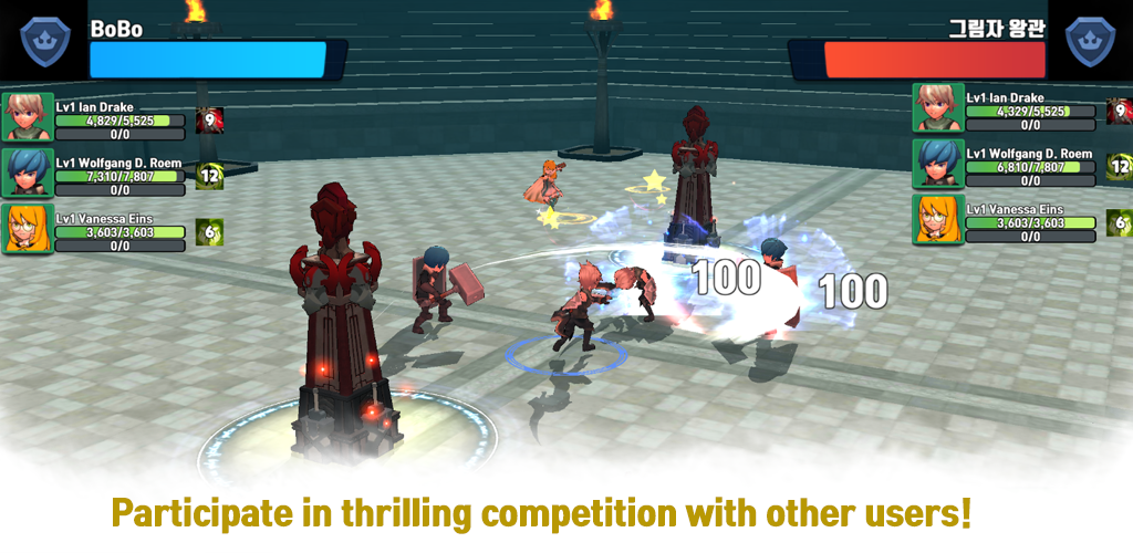 Upon launch, Casual Battle, PVP Arena contents are prepared. You are also able to chat with other users and compete in the PVP Arena Ranked Matches.