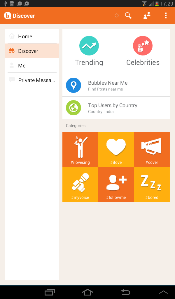 Find and follow friends on Facebook and Twitter who are already on Bubbly. Check out other popular Bubbly users and get notified whenever they share something new on their voice feed.