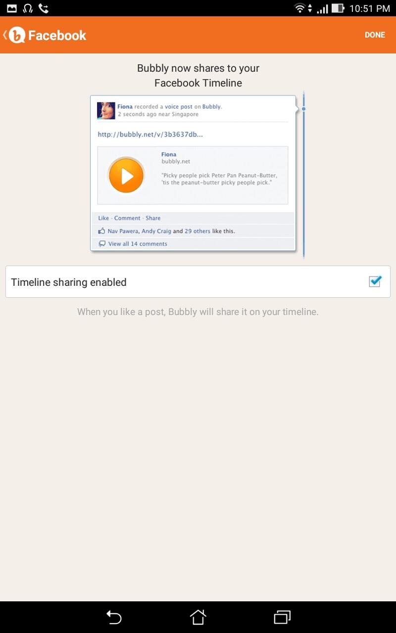 Bubbly lets you post directly to Facebook and Twitter with a single tap from the app. Even if your friends are not yet on Bubbly, they can still listen to your voice updates over the Web.