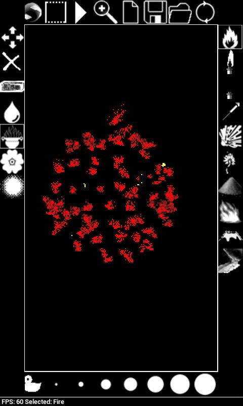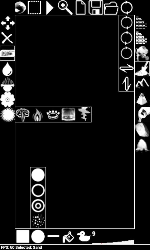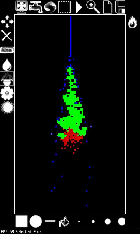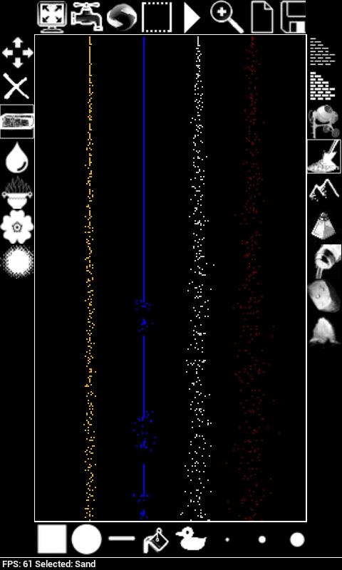 Burning Sand - the popular Falling Sand Game for Windows - finally available for Android. Burning Sand is a virtual sandbox, where you can draw objects with many differen elements that interact with each other. Features: * Fastest falling sand game in the market * Multitouch drawing * Accelerometer gravity * Custom mods * Load/Save sandboxes * More than 60 elements * More than 200 interactions * More than 20 drawing tools If you have questions please visit: http://burningsand.de or http://www.fallingsandgame.com/viewforum.php?f=10