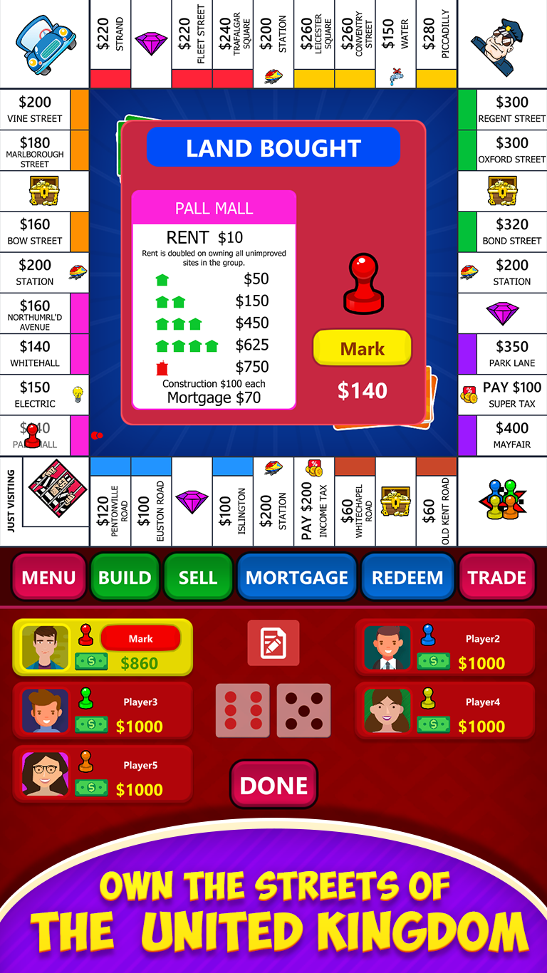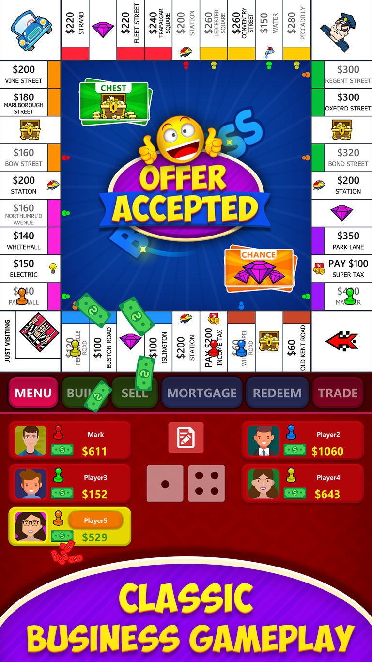 Business Board Game: United Kingdom (Package Name: monopoly.business.empire) is developed by Digital Attitude Games and the latest version of Business Board 1.1 was updated on March 10, 2020. Business Board is in the category of Board. You can check all apps from the developer of Business Board and find 86 alternative apps to Business Board on Android. Currently this app is for free. This app can be downloaded on Android 4.1+ on APKFab or Google Play. All APK/XAPK files on APKFab.com are original and 100% safe with fast download.