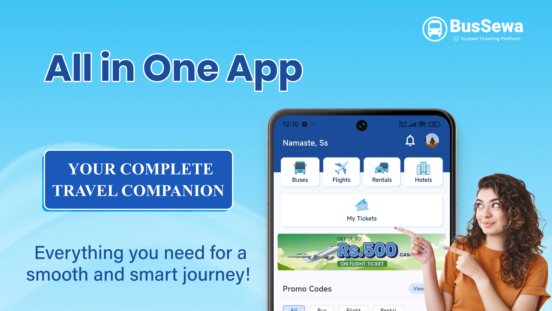 BusSewa is Nepal’s first real-time online bus ticket booking app. Plan, book, and manage your entire journey—bus tickets, domestic flights, hotels, and car rentals—all in one easy-to-use travel app.