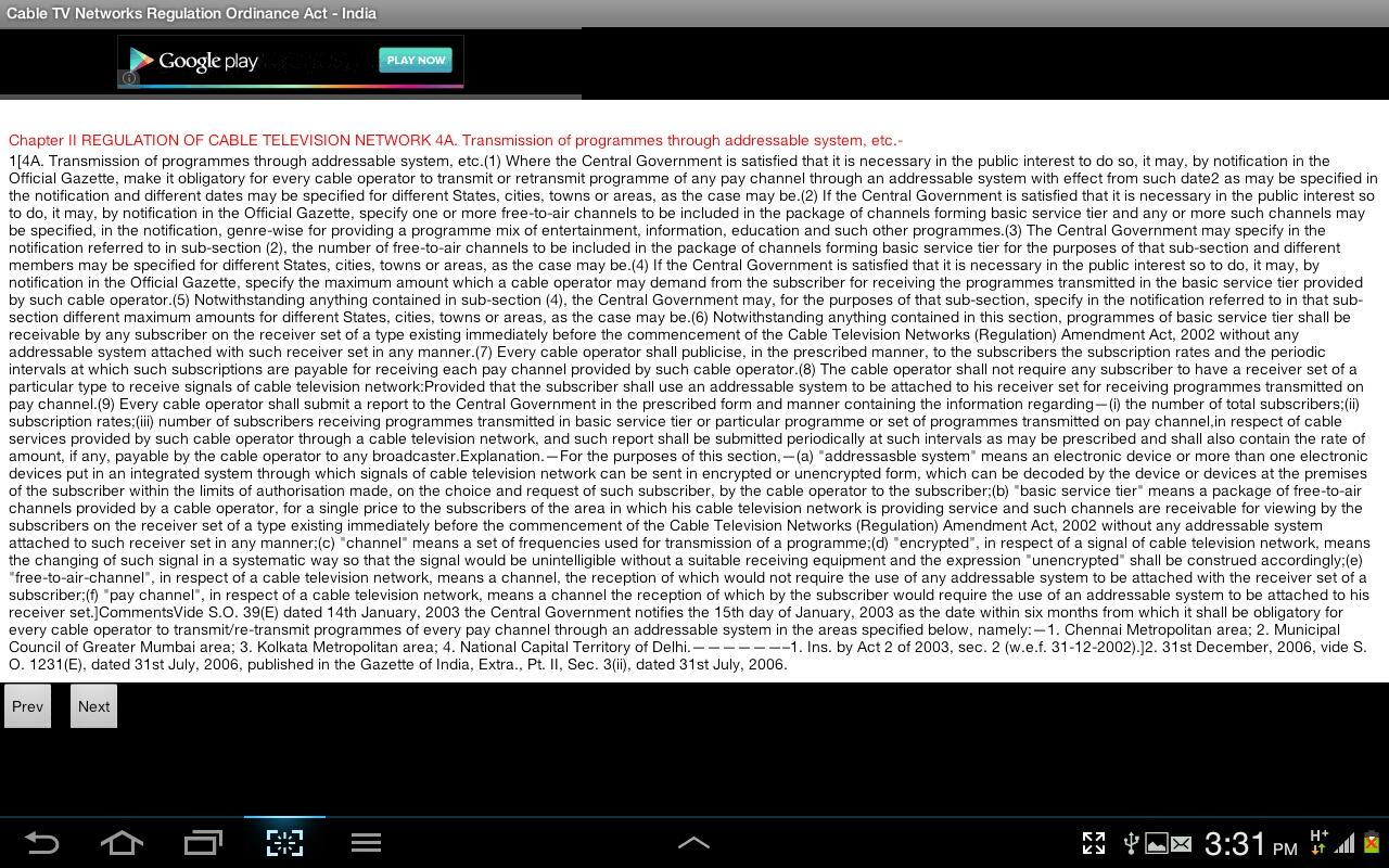 Cable TV Regulation Act- India