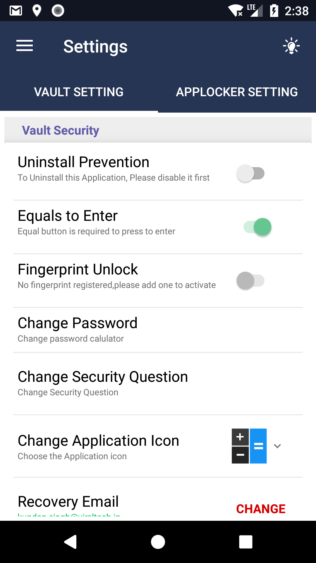 Icon DisguiseThe icon of the application is the same as any ordinary calculator, and you can also use it to perform calculations. You can change or hide the application icon from the menu or you can use vault faces to use different icons than the calculator.