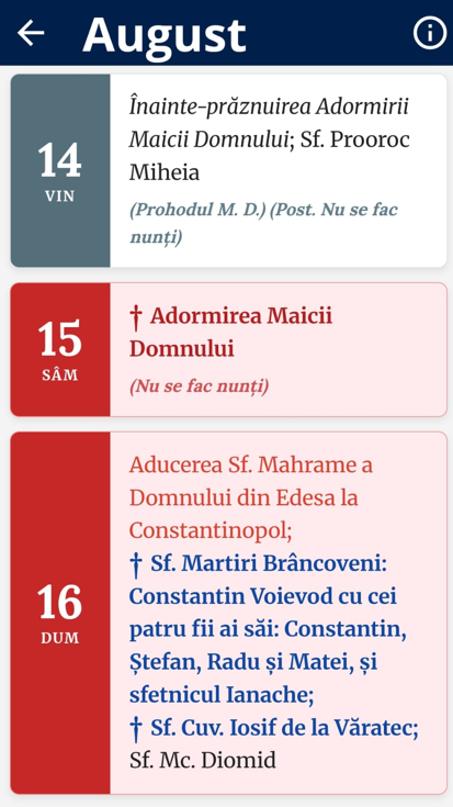 This application is aimed at Orthodox Christians, offering them an accessible overview of the holidays, saints and fasts throughout the year.