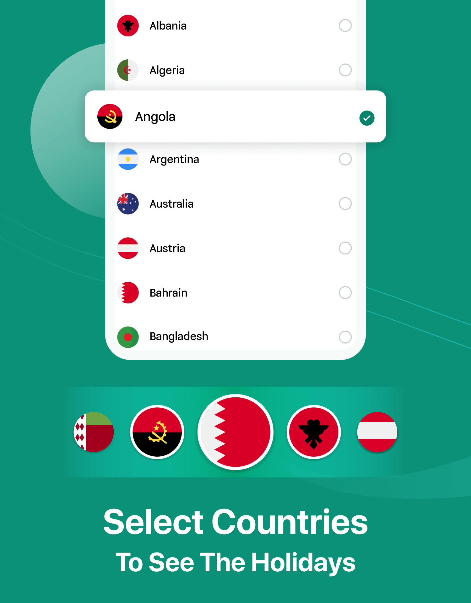 Select your country and instantly view important national holidays! Stay in the know and never forget those key dates again.