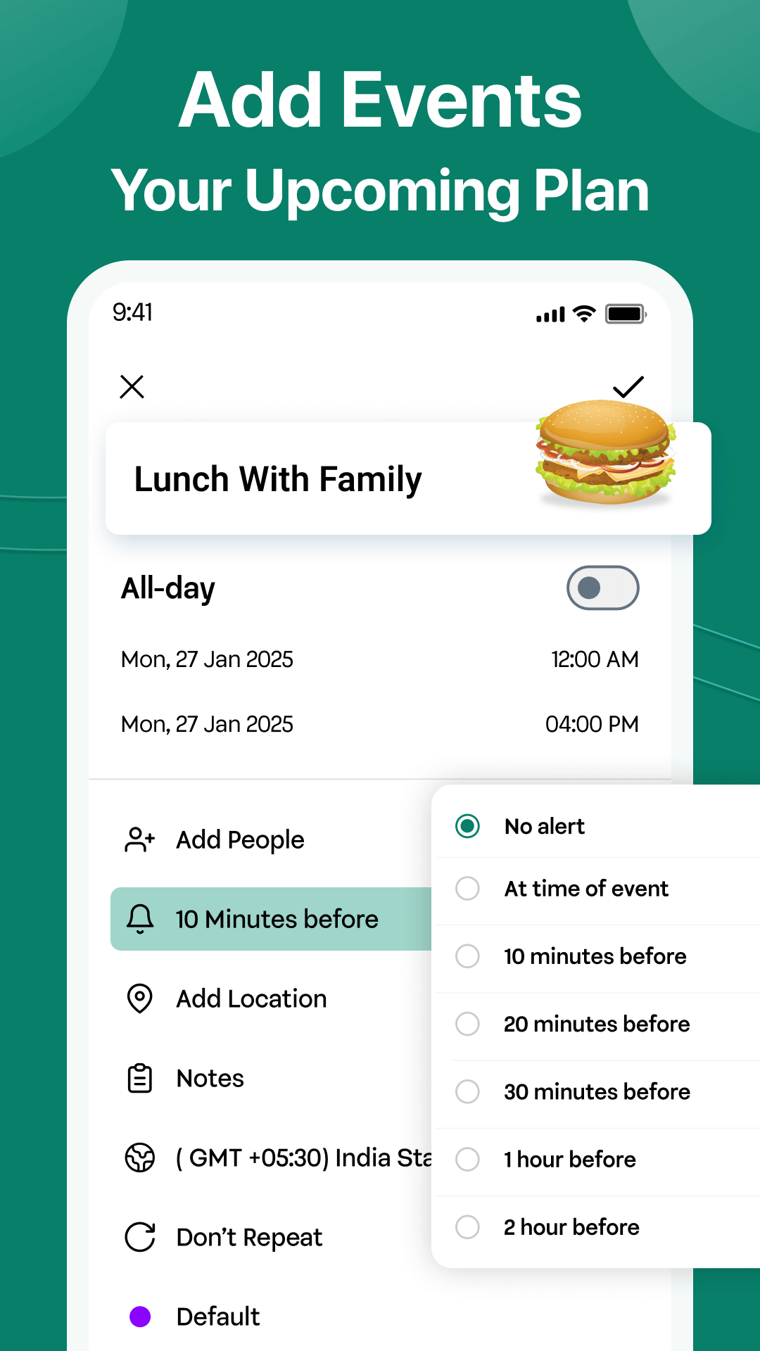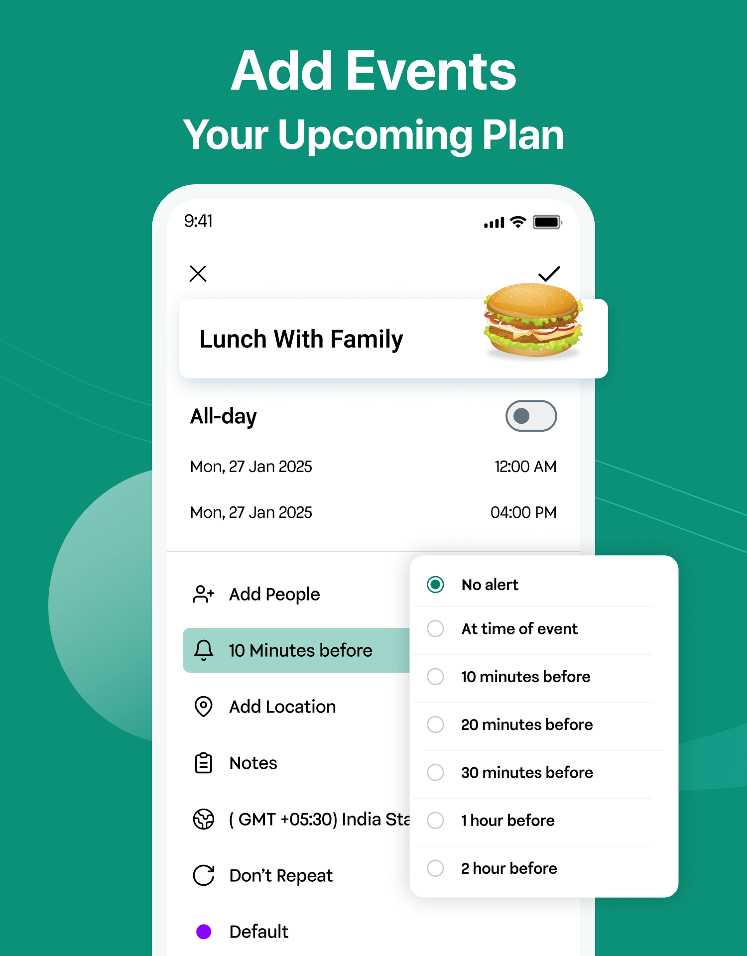Never miss a task, event, or important date with our customizable reminder system. Set notifications for reminders, tasks, and events at any time: on time, 5 minutes before, 10 minutes before, and more! 📝 Add Tasks & Events
