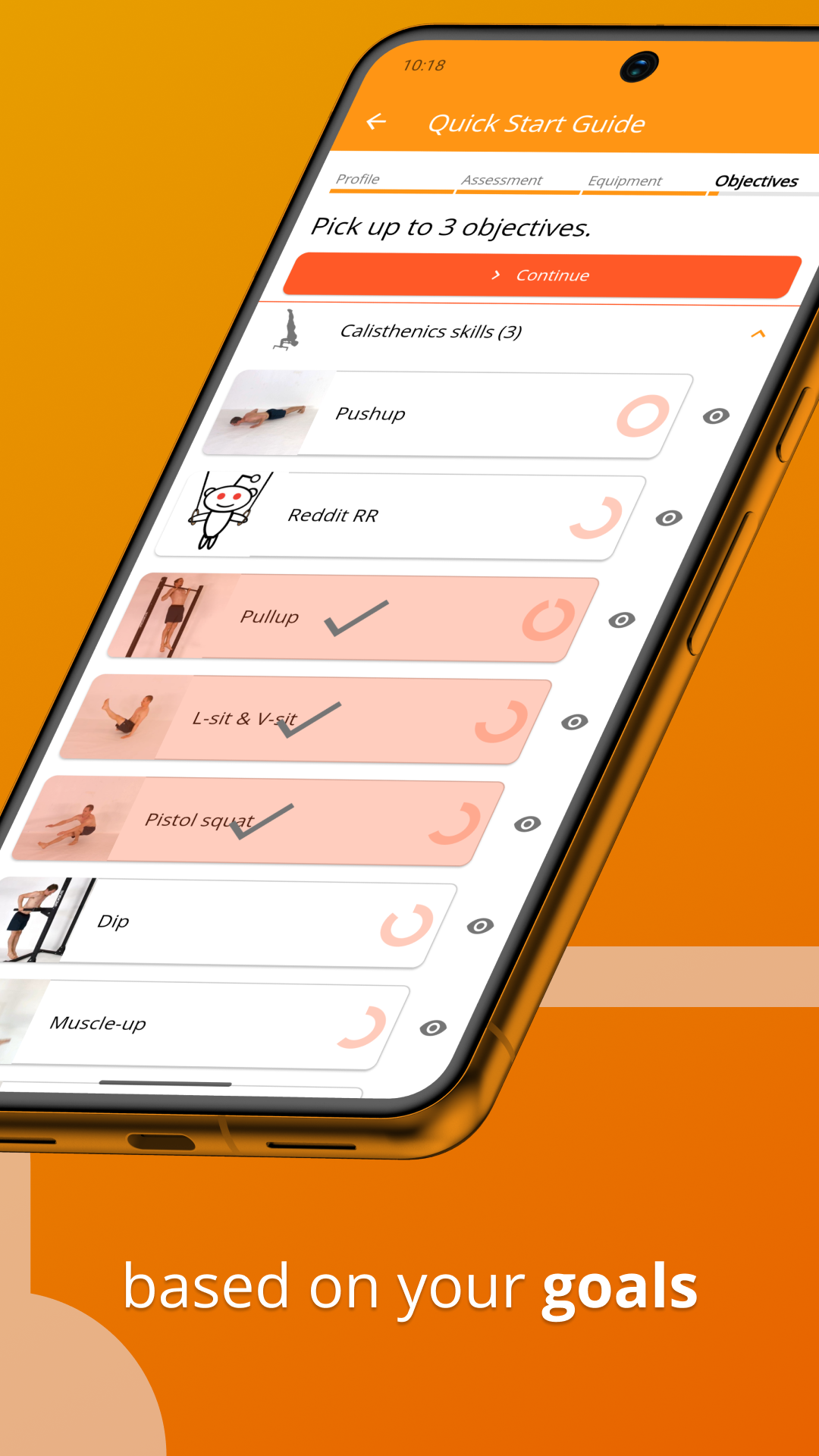 - Choose among a wide variety of objectives: calisthenics skills, home workout and bodyweight exercises, yoga, gymnastics, balance and movement training.