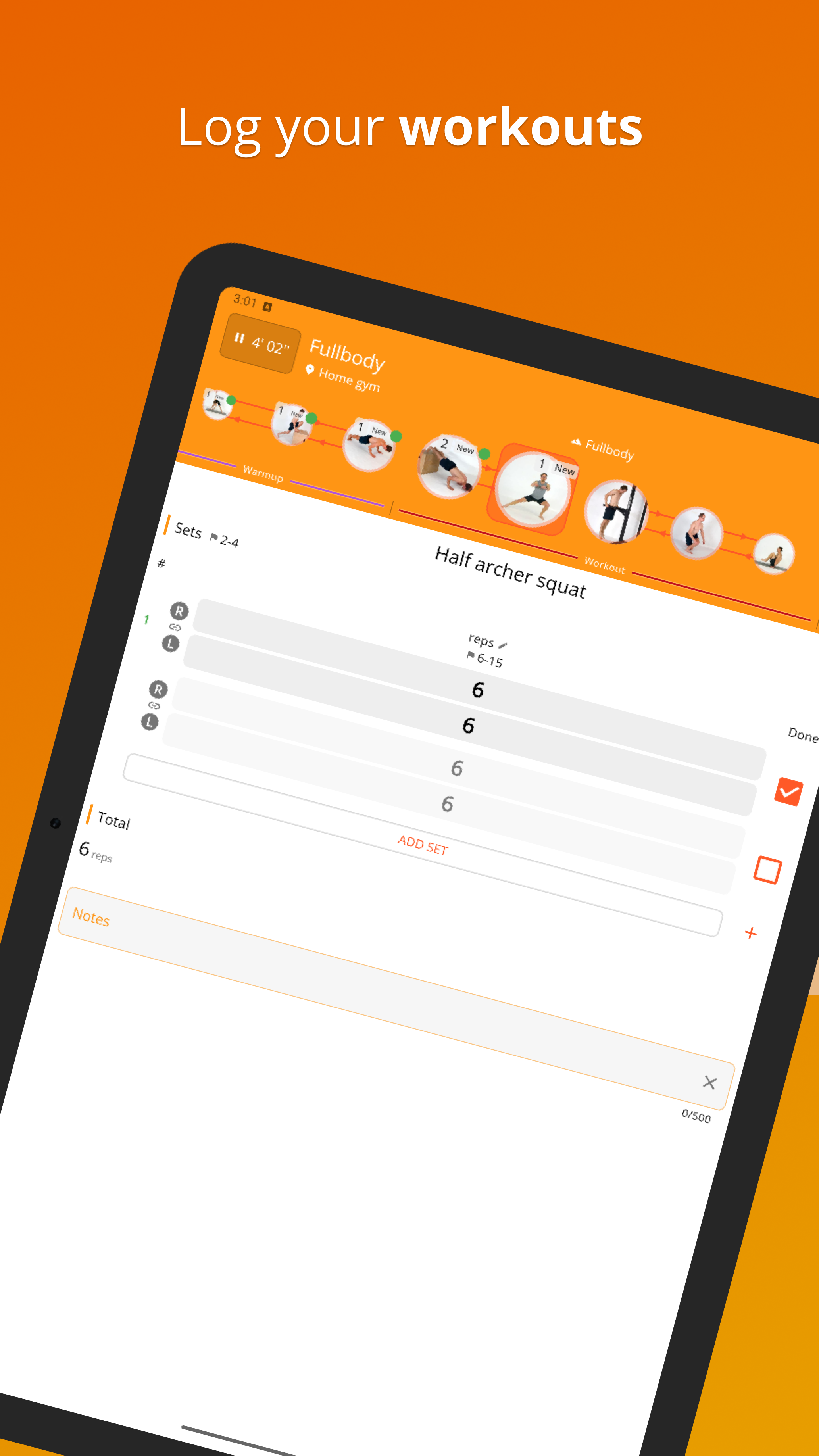 - Customize your workouts with added weight, counterweight, elastic bands, eccentric option, RPE, rest times, ...