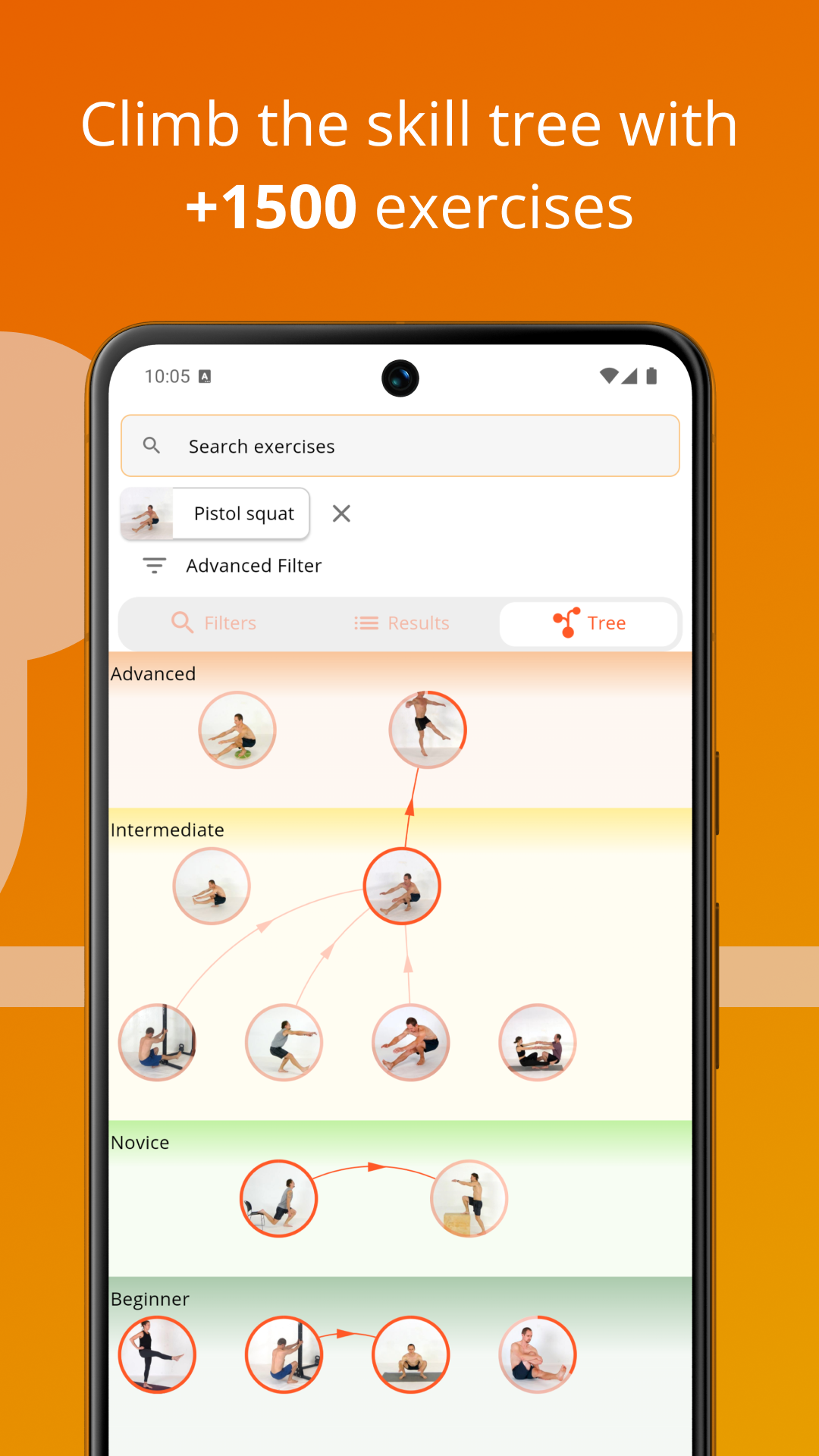 Calistree will be your best companion in your calisthenics journey, whether you are a beginner or advanced athlete, because it adapts to your level and follows your progress with personalized exercises recommendations. Master your body with the help of personalized workouts based on your level, equipment available and objectives.