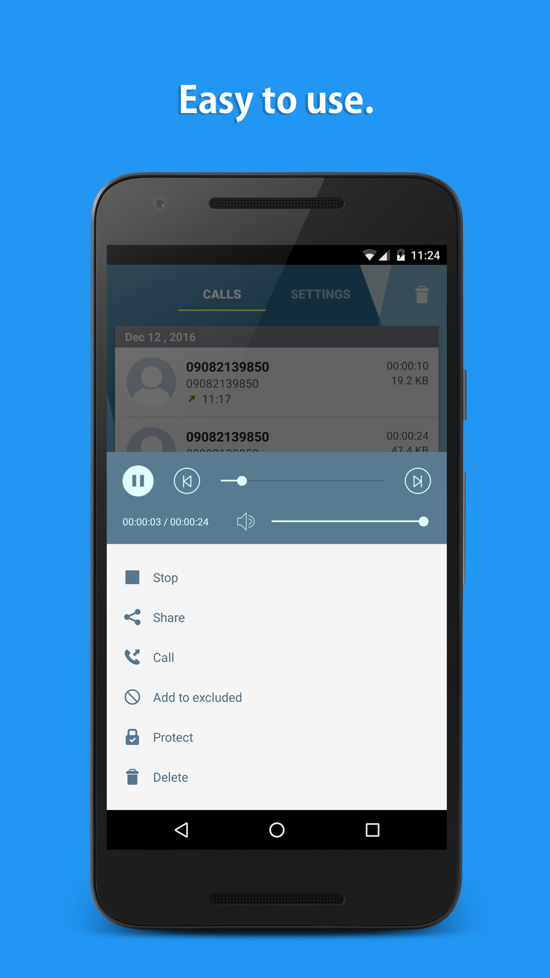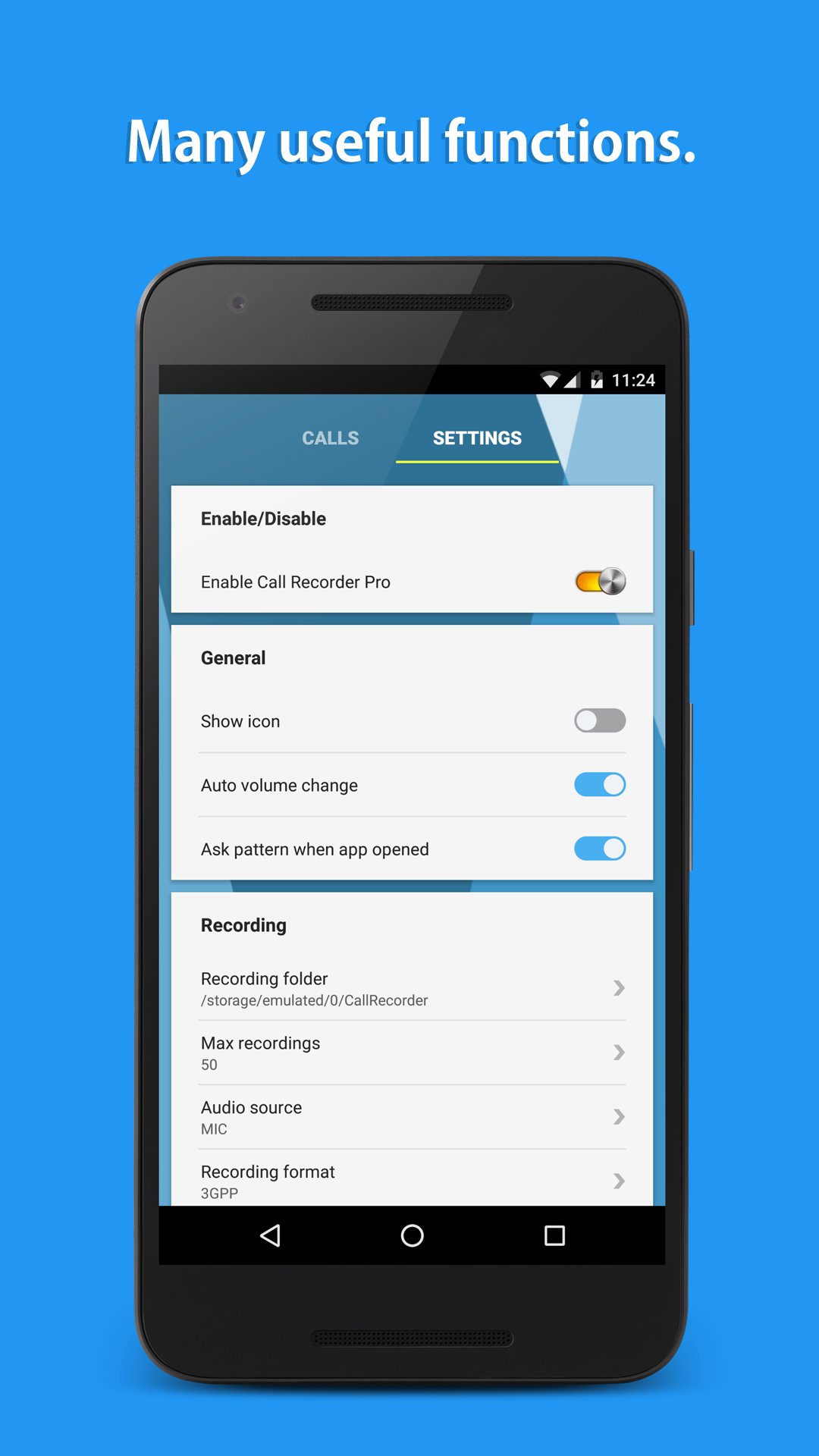 Call Recorder Pro detects incoming and outgoing calls and records them automatically. With the audio source check function, only audio sources that are compatible with your device are displayed and automatically selected. This prevents the app from selecting non-compatible audio sources that could cause the recording to fail—a problem all too often seen with other apps. If you are having trouble recording with other apps, please give this app a try. * Depending on the specifications of the phone, it may not be recorded properly. This is not an issue with the app. ✔Comes with user-friendly functions such as automatic volume change when playing back recordings. ✔The application lock function protects your privacy by requiring users to input the unlocking pattern when starting up the app. You can check this app's functions and operations with a free version. Please check the functions and operations by free version before you buy. https://play.google.com/store/apps/details?id=jp.snowlife01.android.callrecorder0 【Features】 • Recording playback • Share • Outgoing call • Exclusion function • Recording protection • Recording delete • Show icon • Auto volume change • Ask pattern when app opened • Recording folder • Max recordings • Audio source • Recording format • Auto delete after "X" days • Auto delete short recording • Cloud upload • Use external player 【Privacy Policy】 Call Recorder Pro does not collect or transfer any data to us or to any third party. Read Phone State Get the state of the phone, so that it can start call recording when you are answering a call. Process Outgoing Calls Same as Read Phone State, start call recording when you are making a call. Record Audio Record your phone call with microphone or the voice call channel. Modify Audio Settings Adjust the volume in playback. Read Contacts Reading and displaying the names of contacts when recording the phone calls, and reading all the contacts for adding exclude list.