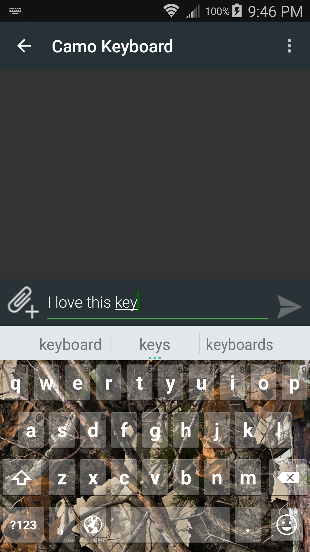 Camo Keyboard is a free and easy to use personalized keyboard! It has over 500 emojis, predictive text and more. Best of all, you don't need a 3rd party app to use our keyboard skins! Yes, that's right go is not needed! Just install and follow the 2 easy steps! Camo Keyboard works as a full functioning QWERTY keyboard with uppercase and lowercase letters, numbers, and so much more! Don't forget to check out the other free keyboard themes that we have :P