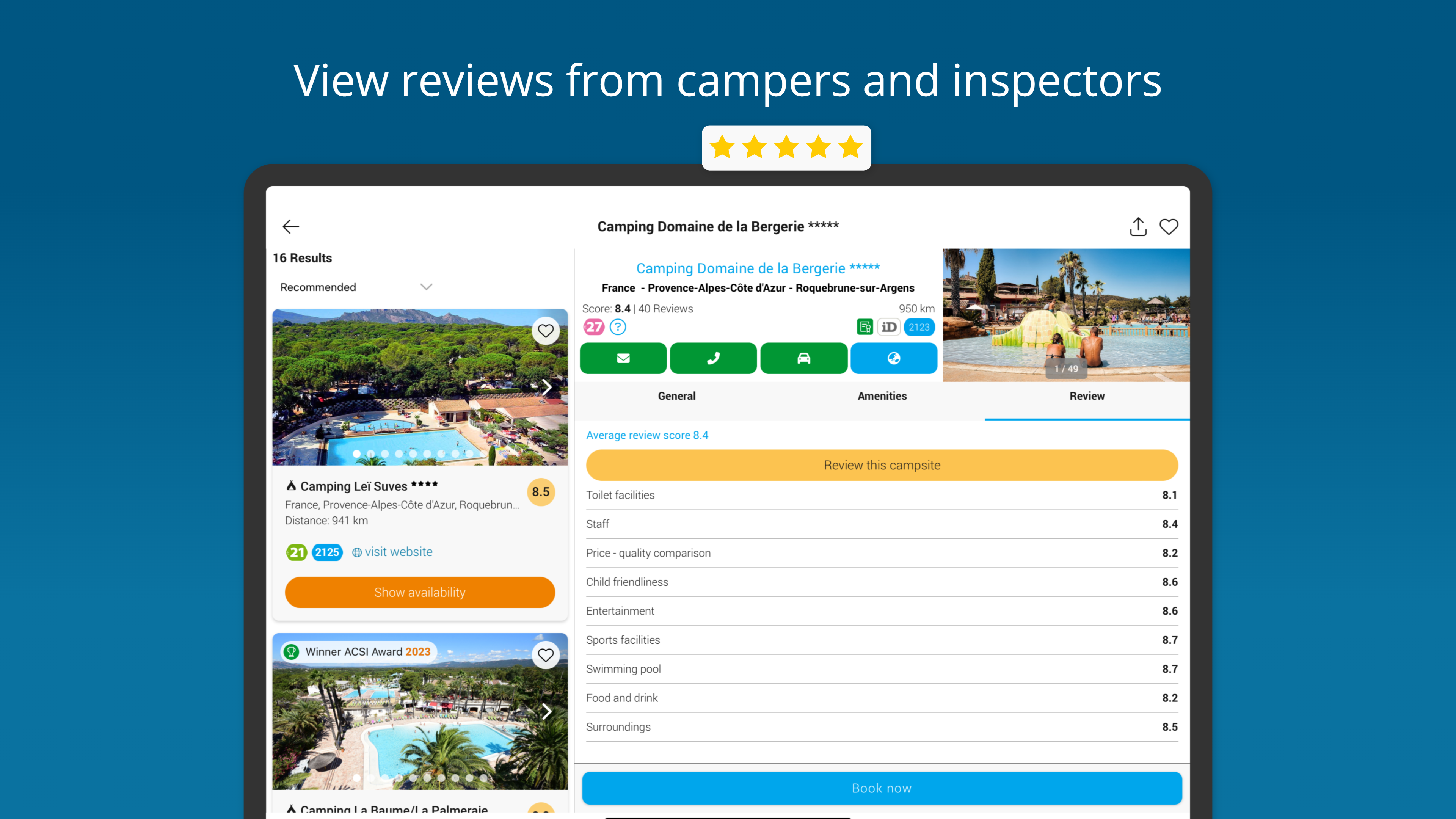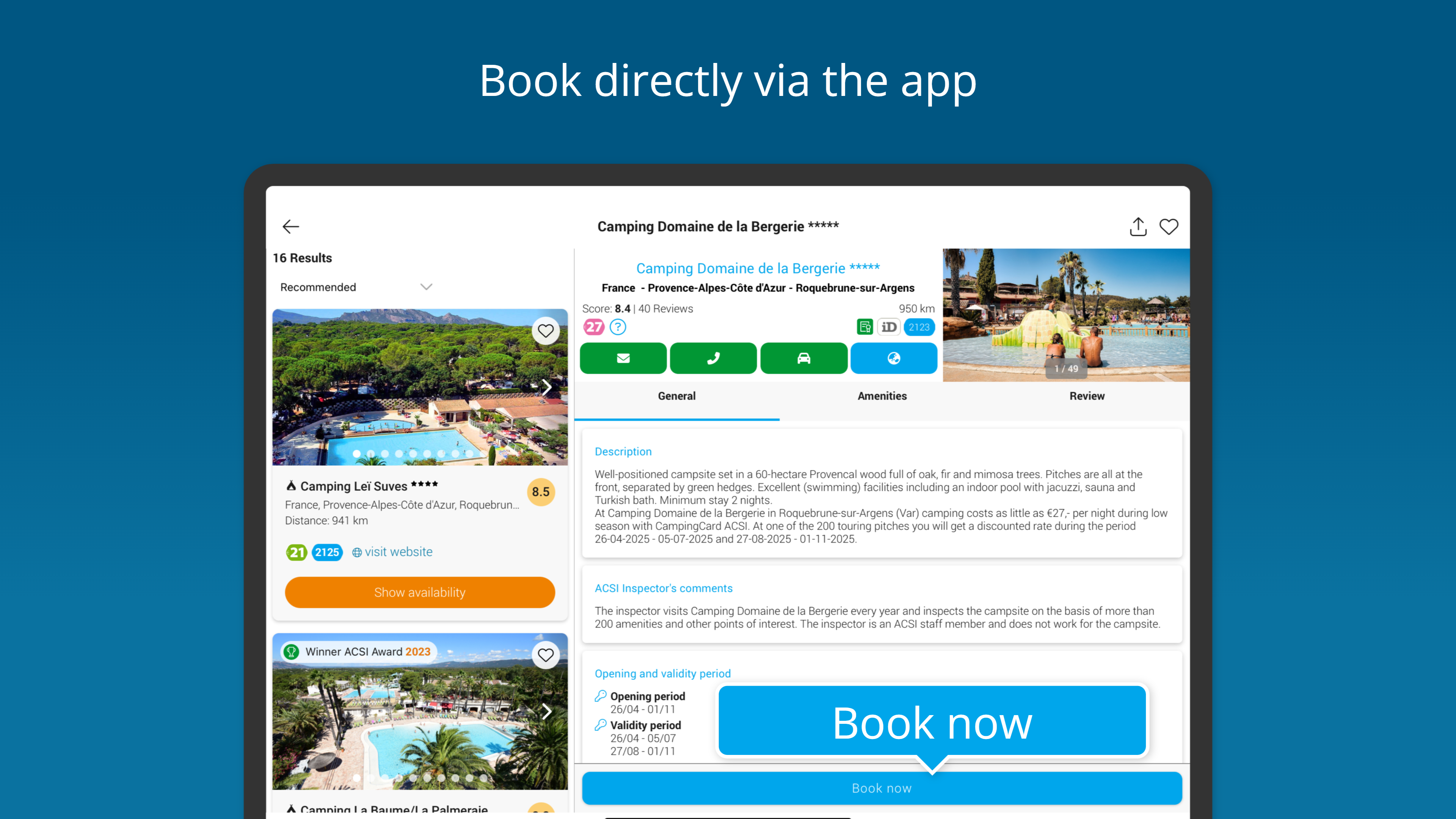 The new 2026 data is now available in the app! All campsite and motorhome pitch information has been updated, so you'll have the most up-to-date details for your camping adventures this year. Update the app and get inspired!