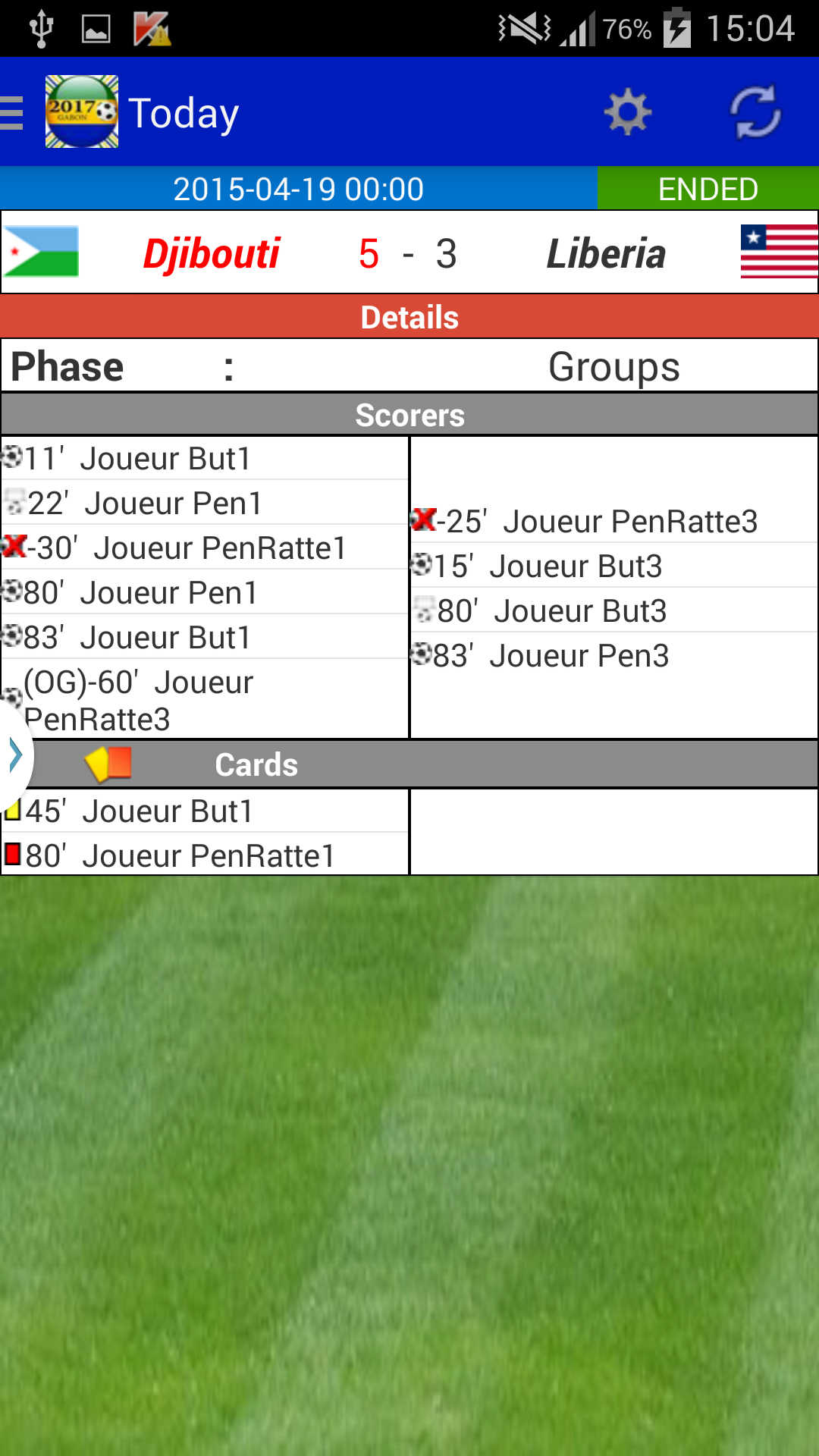 You want to have all information about the African Cup 2017 qualifier in Gabon ? Download this application to follow the most important tournament of African football. Consult detailed and updated information in real time: -> Teams -> Groups -> Matchs -> Top scorers -> Palmares