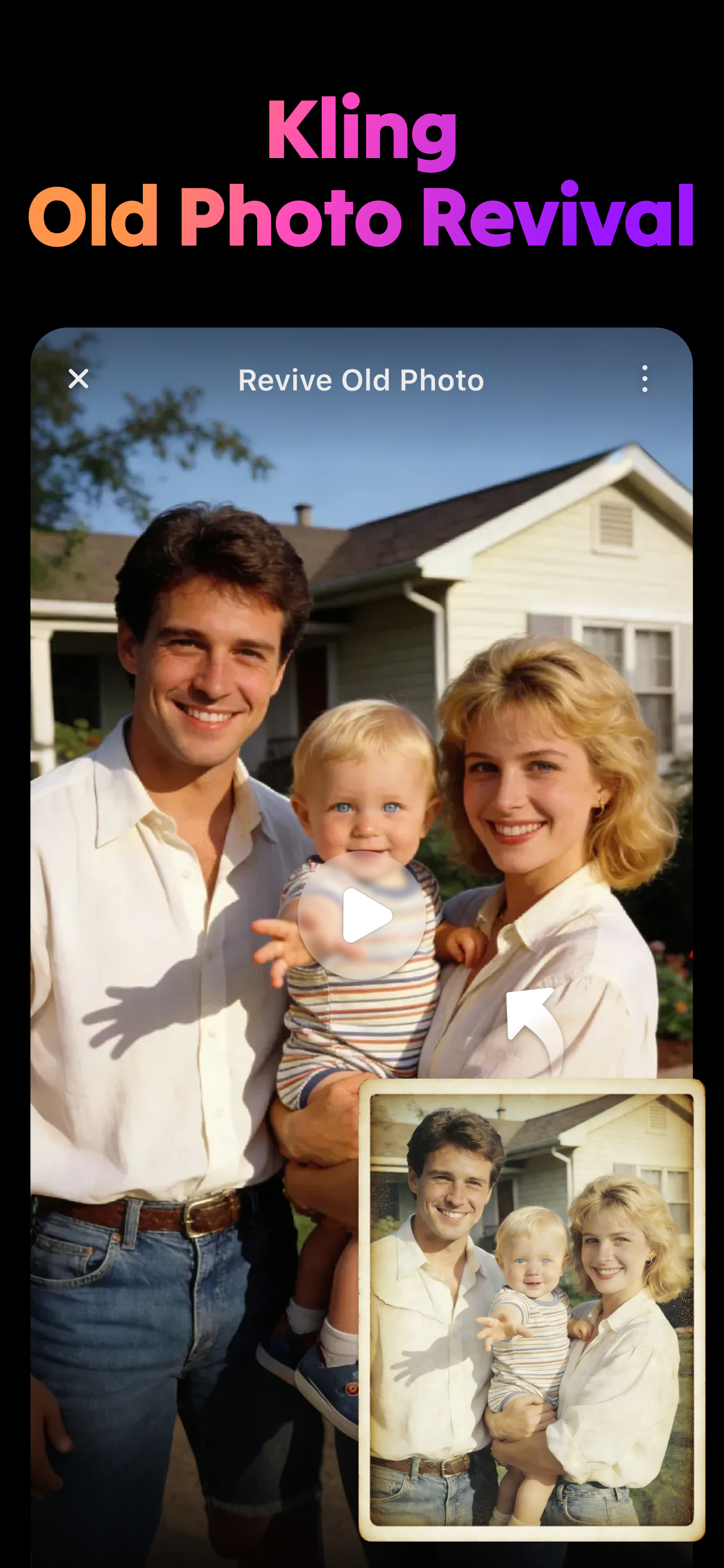 • AI Enhance & Restoration: Transform blurry or damaged photos into clear, vibrant images—instantly remove scratches, restore colors, and reconstruct missing details to revive precious memories.