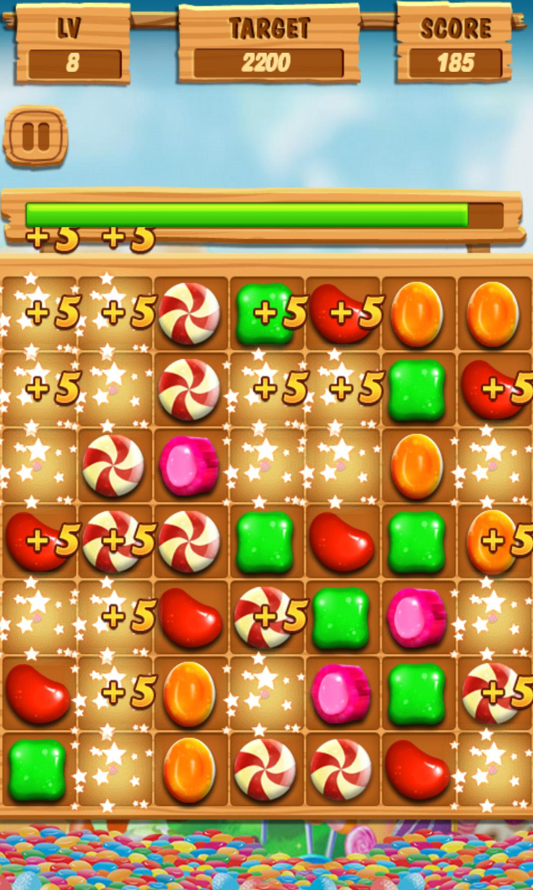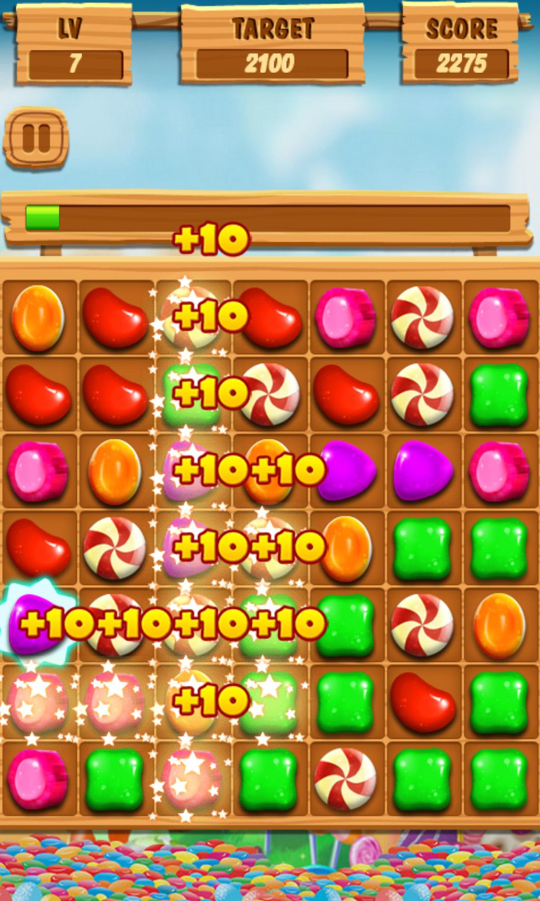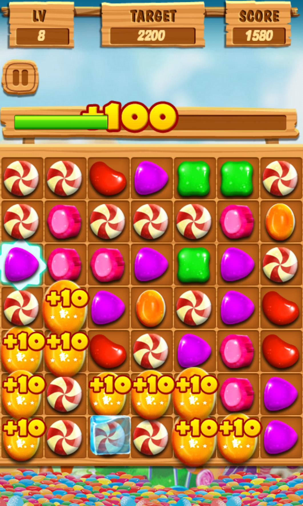 Candy Splash is a sweet candy game, it's very delicious and addictive! Connect on two or more adjacent candy in one line to make them crush, and try to scoring as many points as possible! You can play this sweet saga game with friends to see who can get the highest score! How to play: 1. Connect three or more same candy splash to score points. 2. Archive the target points to level up. 3. Eliminate the more candies line quickly can get extra scores. Game features: 1. More than 200 challenging levels & many game props. 2. The Fire props can eliminate candy in one row. 3. The Water props can eliminate the candy around. 4. The Ice props can unfreeze the frozen candy. 5. Sweet and delicious UI & cool animation effects. 6. Very small size but super tasty graphics 7. Play the game and Have Fun!!!