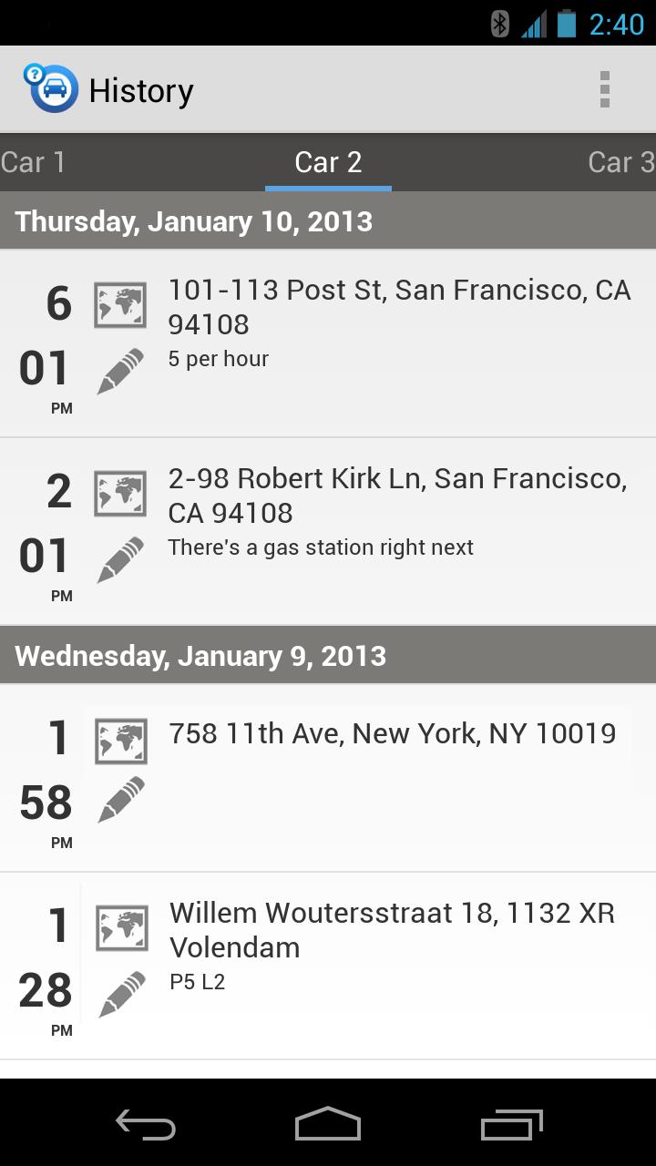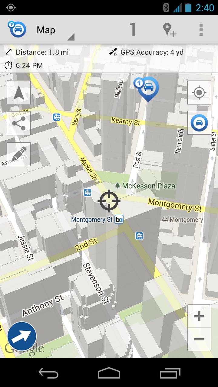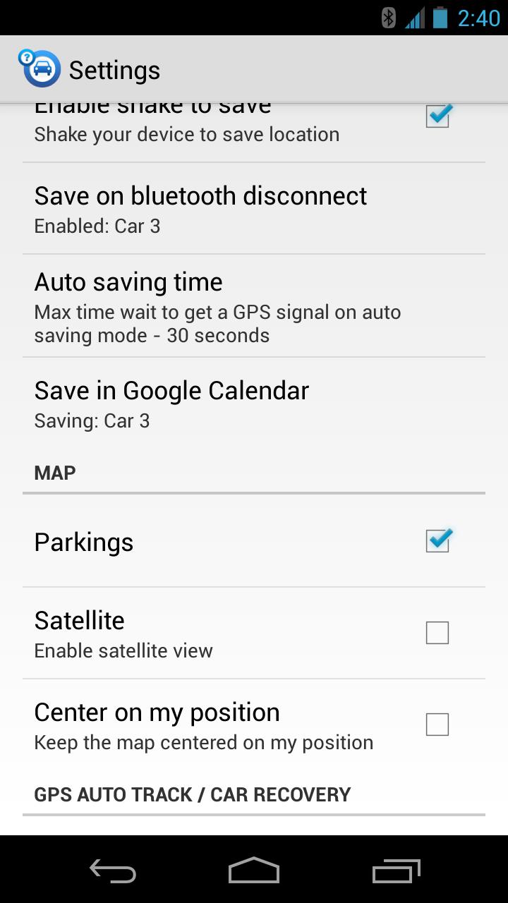 Never lose your car again! Car Finder AR automatically keeps track of where you park. Use augmented reality, 3D Google Maps and radar to find your parked car. ★New GPS Auto Track module will also allow you to track your car from home★ ★Get driving directions to the nearest car park★ This app has been reviewed in the book "Amazing Android Apps For Dummies" Features: ✔Saves location automatically when turning off the car * ✔New GPS Auto track / Car recovery mode to track your car if it gets stolen * ✔Augmeted reality/3D Maps/RADAR view to find your way back to your parked car ✔Shows nearby car parks on the map ✔Driving/Walking directions to your parked car ✔Manage up to 3 different cars ✔Send Email/Whatsapp/Line with the location of your car ** ✔Store a log on Google Calendar *** ✔Home screen widget for saving location with just one click, one for each car ✔Parking meter alarm ✔Parking timer ✔Save notes ✔Location history ✔Shake to save ✔Tell your mates where your car is by sharing location ✔Advanced algorithms that will NOT drain your battery -------------------------------------- * You need to have bluetooth connection in your car. ** This app will never send any email automatically nor access your contacts list. *** This app only writes to your calendar. It does not read nor share any of your calendar entries.