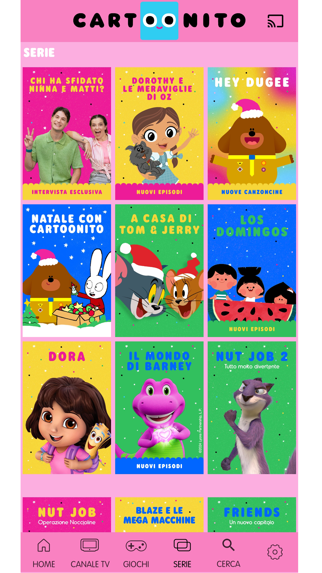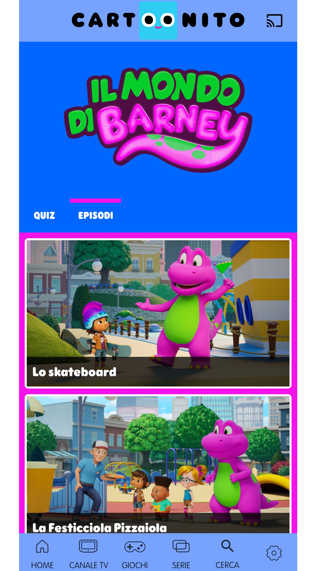 Enter the world of Cartoonito now and choose your favorite cartoon to watch in streaming from those already broadcast on TV. Download the Cartoonito App and enjoy the episodes of Simone, Barbie, Power Players, Meteoheroes, Dino Ranch, Thomas Train, Kingdom Force, Mico e i Fufunghi, Cocomelon Yeti tells, Miracle tunes, Kid-e-Cats, Paw Patrol, fables by Cartoonito, Tom and Jerry Show, sings with Cartoonito, pinkfong's baby shark, Cocomelon, Grizzi and the Lemmings, Let's go cozy coupe, and more!