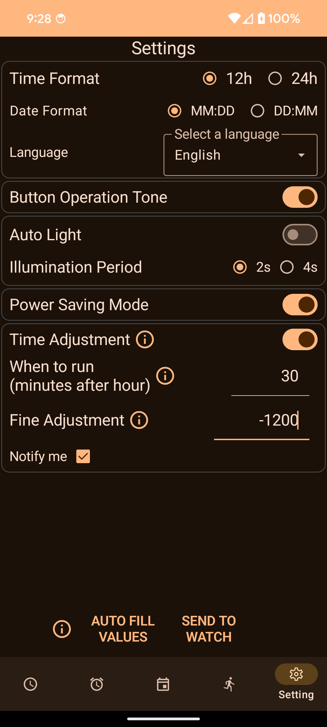 - Auto-configure most watch settings from phone's configuration.