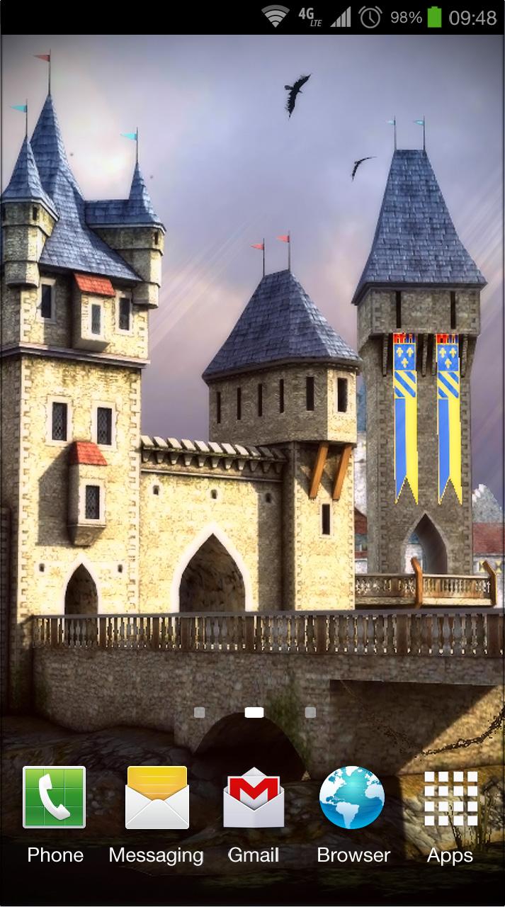 For easy launch on latest Android devices (or any other) , please use "Live Wallpaper Shortcut" app or official Google "Wallpapers" app. It will bring live wallpapers menu in one click. One of the most amazing 3D live wallpapers on Google Play for your phone or tablet! Stunning fully 3d fantasy medieval environment with amazing castle with crispy realistic look will fill your phone with fantastic colors! 8 different cameras will allow you to explore world easily and produce countless angles of views! Now with real world time of a day lighting and real sky! Also additional customization settings available. Do not rely on screenshots, you have to download it to understand the real 3D impact! If you want to keep updated, leave your suggestions or requests or just "Like" visit me at Facebook https://www.facebook.com/3dlivewallpapers Please, comment, thanks! If you have any problems feel free to contact me, before rating,i will be happy to help :-) CASTLE 3D PRO LIVE WALLPAPER made with OPEN GL 2.0 and optimized to consume low resources and also not to drain your battery. Installation: The main screen (long press) → Live Wallpaper →CASTLE 3D PRO LIVE WALLPAPER On some devices the first loading can be a little bit slow, just give it half a minute.