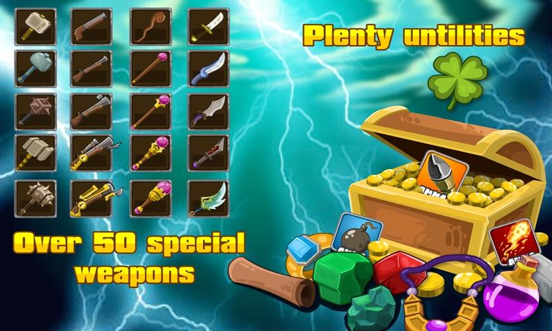During the game you will hold your defense with your warriors against the massive hordes of enemies. Protect the king's gem from stealing by the monsters. With every level you will have the use of weapons at your command. It is up to you, the exorcist! Different types of weapons and landscape provide you with a variety of choices of defense tactics. Choosing the right weapons and shooting the enemies with the right power is key to any successful defense. When you finish the 25 days defense in the game, the Survival Mode will be unlocked. Enjoy!!!