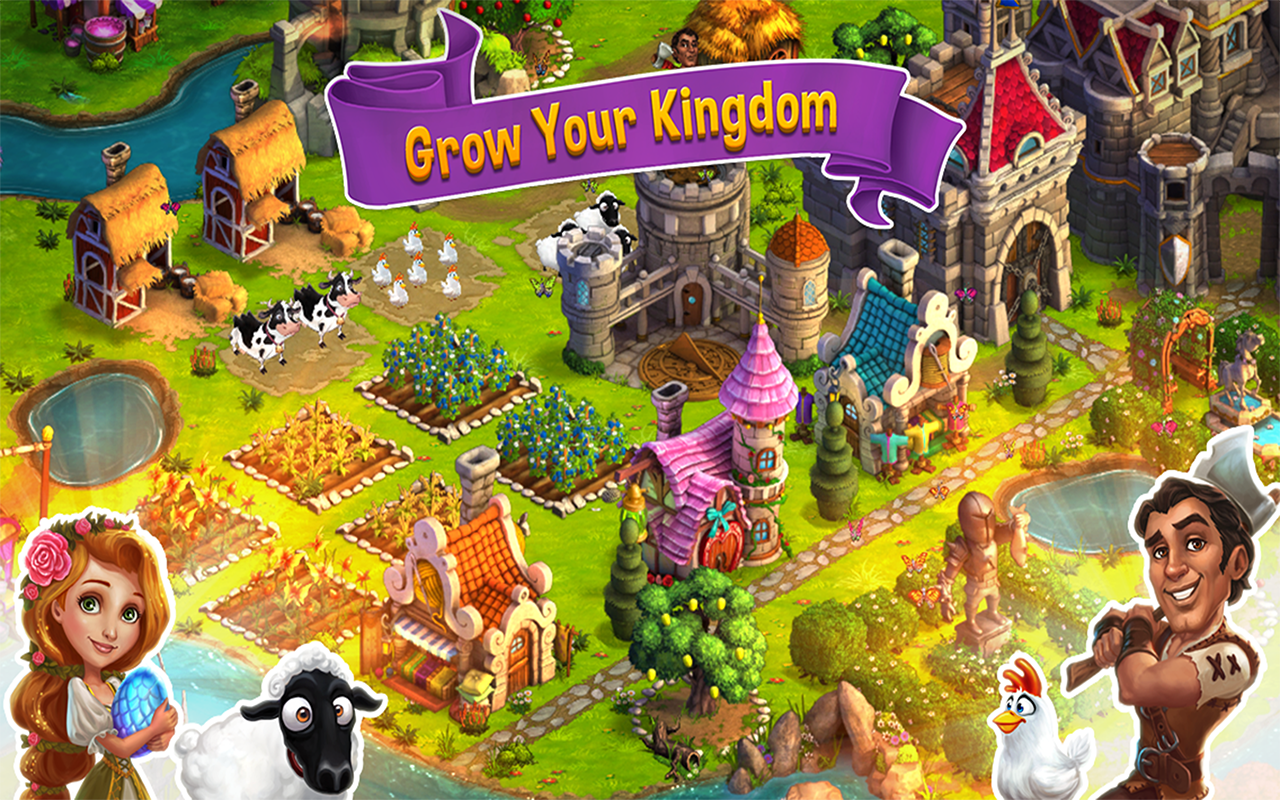 • BUILD your kingdom from enchanted workshops, fields of beautiful crops, new lush, family farm by the coast so all your friends can visit