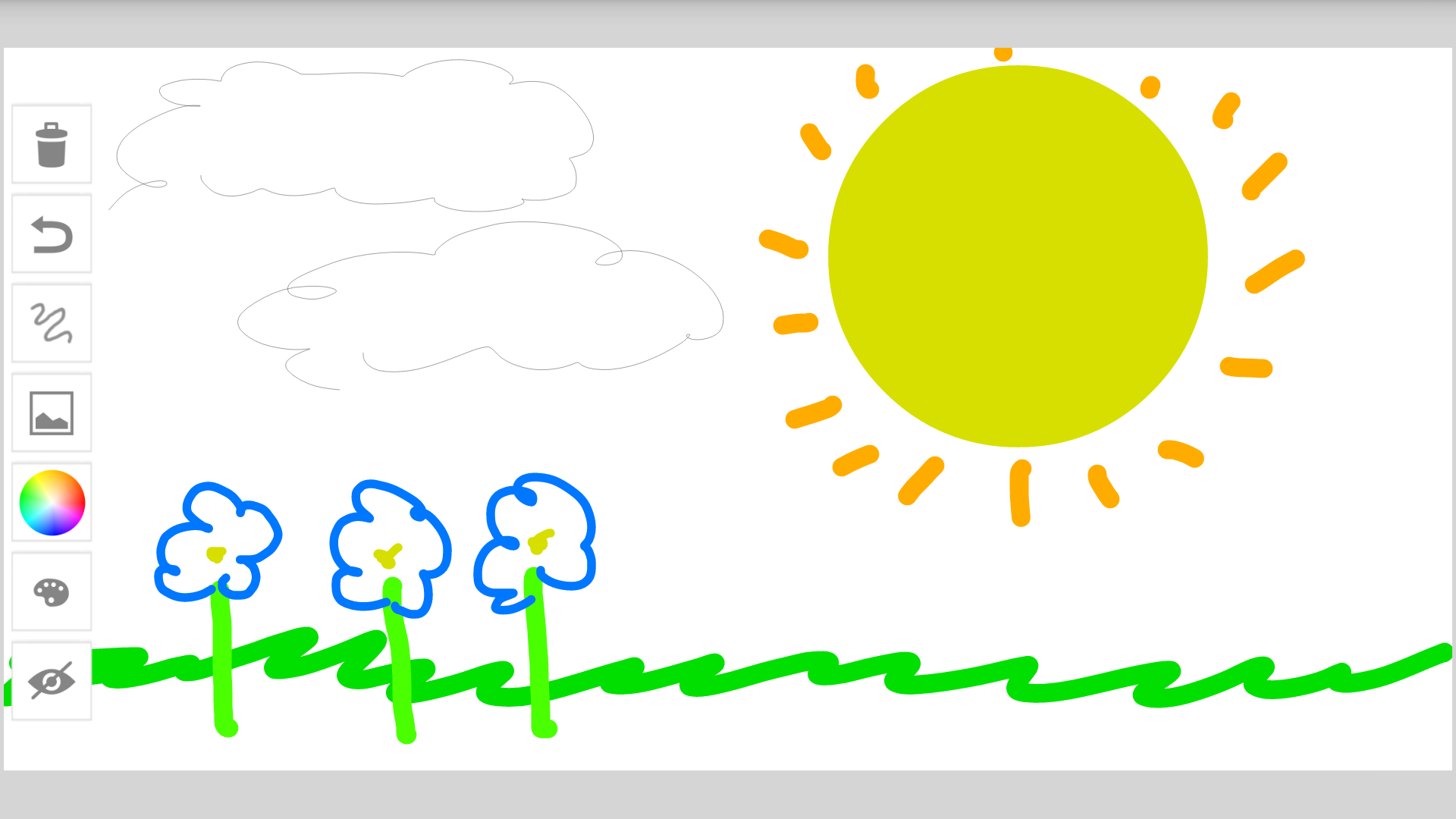 • 5 colors: Black, white (acts as an eraser), blue, red, and yellow.