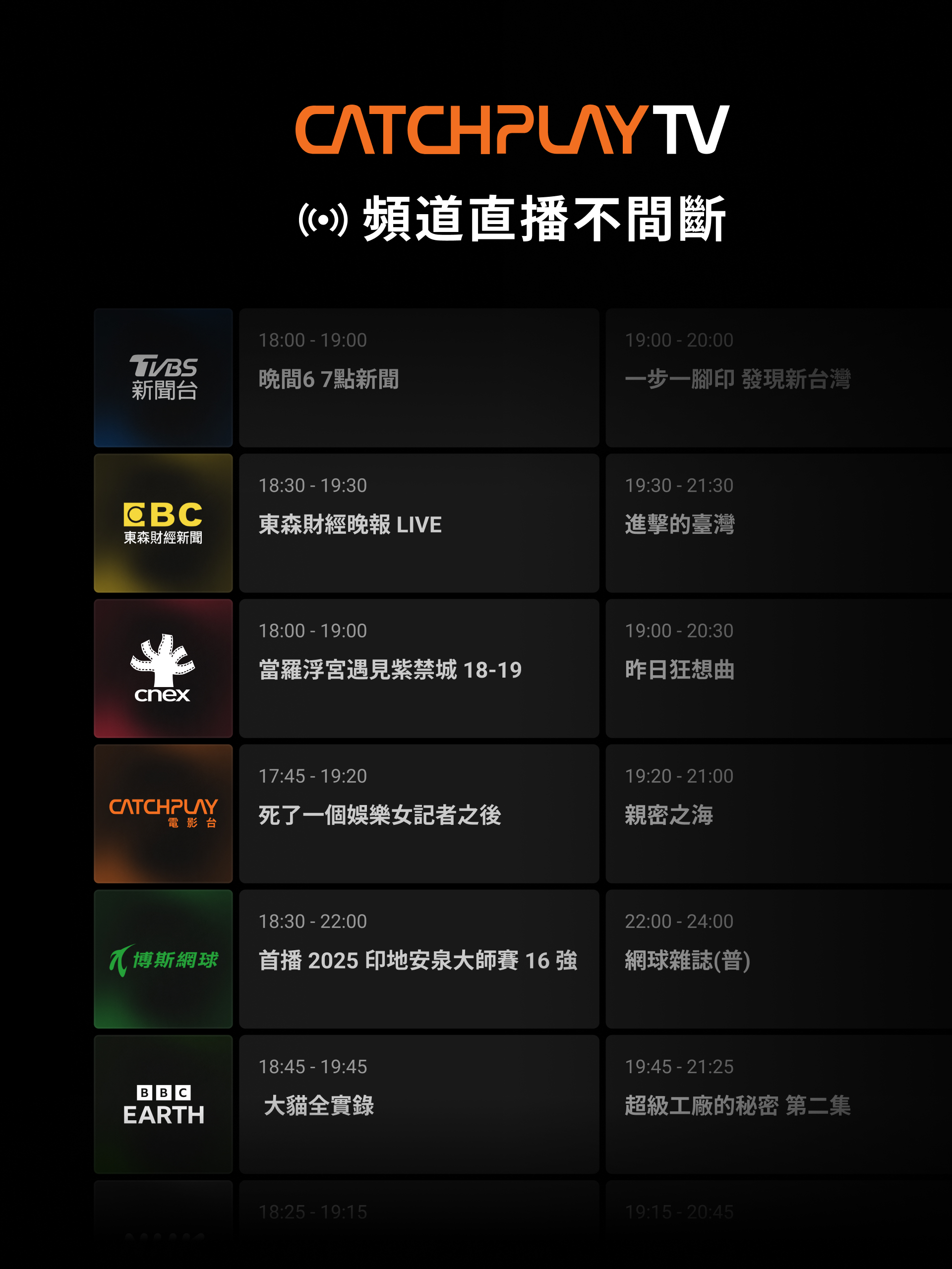CATCHPLAY+ seamlessly integrates streaming video-on-demand with live TV channels. Enjoy the best of both worlds—instant playback and real-time broadcasts. Our newly launched "Light Channels" feature domestic and international news, sports, and idol dramas, perfectly catering to the needs of modern streamers.