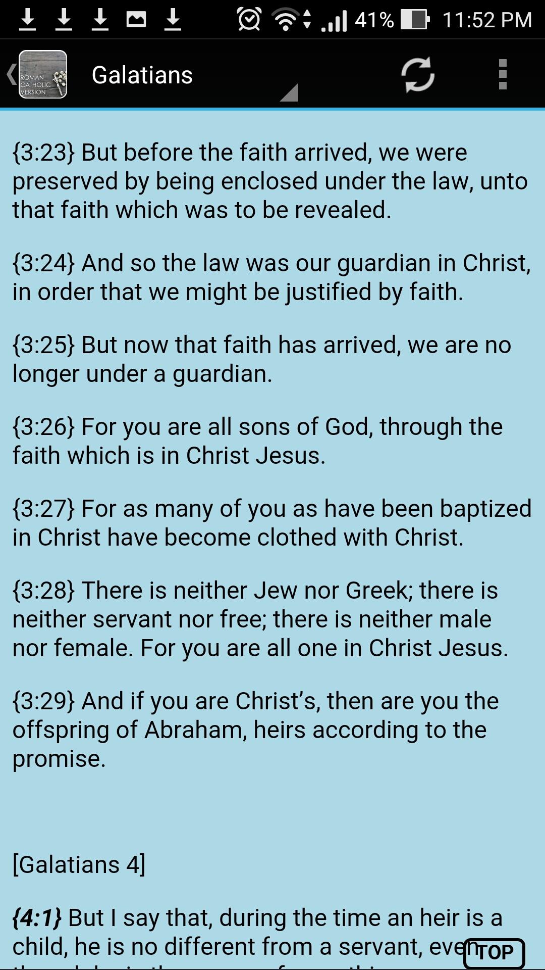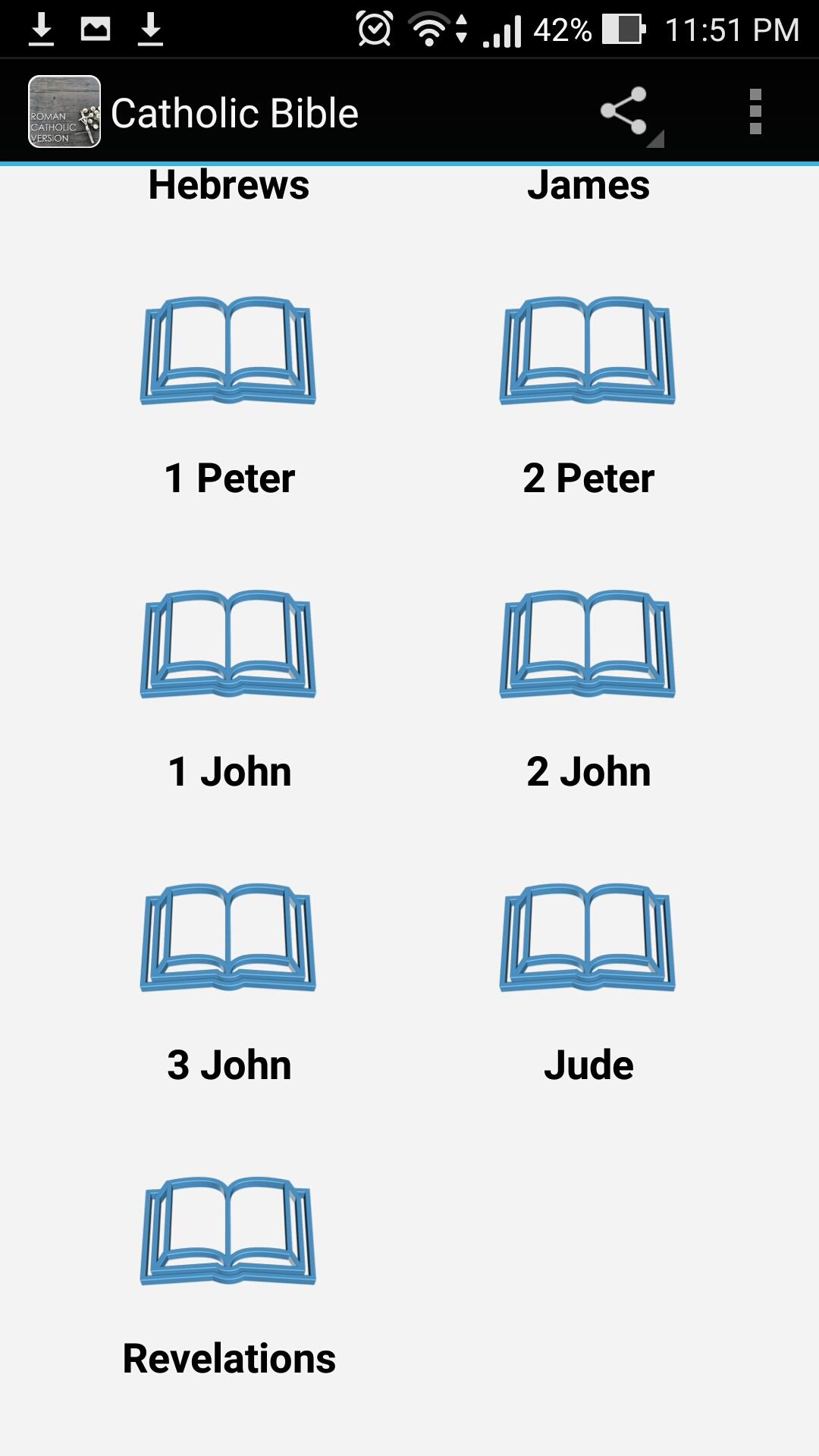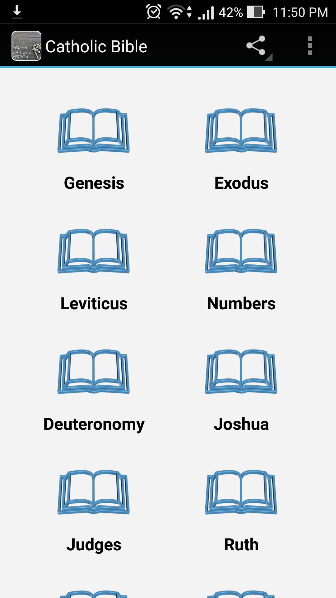 Catholic Bible is 100% free and can be used offline. App inclusions: - Complete Old and New Testament Books of the Bible, including the deuterocanonical books. - Can be read offline - Clear wordings - Works on all android phone devices - This app can be shared to others - Language: English More about Catholic Bible : The Catholic Bible is the Bible comprising the whole 73-book canon recognized by the Catholic Church, including the deuterocanonical books. Download this app now and be blessed by the Word of God.